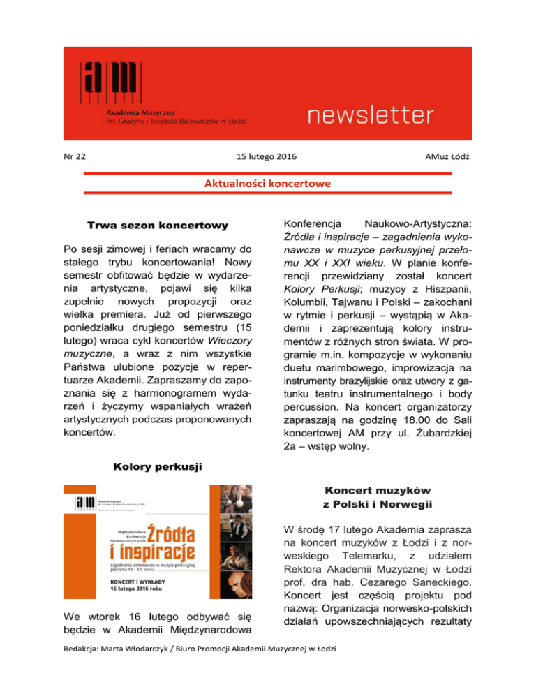 Aktualności koncertowe - Akademia Muzyczna w Łodzi