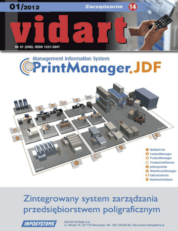 SPIS TREŒCI Niewykorzystane możliwości 38 Tylko co trzeciej dużej firmie udaje się przekształcenie działalności przy pomocy technologii cyfrowych. vidart nr 01(249) PAP likwiduje Drukarnię Naukowo-Techniczną 52 Po siedmiu latach prowadzenia działalności poligraficznej PAP zdecydowała się ze względu na bardzo złą sytuację ekonomiczną zlikwidować oddział − Drukarnię Naukowo-Techniczną. 2 OD rEDAKTOrA 4 Ten rynek jest do zagospodarowania WIADOMOŚCI 5 Zmiany w QuadWinkowski TEMAT NuMEru: ZArZąDZANIE 14 ABC zarządzania w Heidelberg Polska 16 Nowe koncepcje Hewlett Packarda 20 MIS pod lupą Na co warto zwrócić uwagę? 23 Rynek ERP w 2012 roku Ocenia Chad Meyer z firmy Epicor 24 Integracja systemów MIS i prepress 28 Opanować koszty Pomaga Dariusz Dobrowolski z firmy Profis 30 Bezpłatne oprogramowanie usprawniające druk INfOrMATOr POlIgrAfICZNy 01/2012 vidart SPIS TREŒCI MIS pod lupą 20 Oprogramowanie typu MIS jest zazwyczaj najskuteczniejsza metoda na zyskanie przewagi nad konkurencją, która takiego systemu nie posiada. Jeśli posiada – to zwykle jest to jedyna metoda, abyśmy nie zostali przez nią wyeliminowani. www.vidart.com.pl 34 Rządzimy drukiem Doświadczenia firmy Konica Minolta 38 Niewykorzystane możliwości Jak technologie cyfrowe zmieniają działalność firm 41 Outsourcing druku To pojęcie obejmuje zarówno produkcję, jak i zarządzanie 54 Opakowaniowe innowacje Targi Packaging Innovations 55 Intergraf wspiera EcoPrint 2012 56 Drukarze grożą strajkami Napięcie w Austrii 68 Ricoh liderem w raporcie IDC MarketScape 68 Mobilne drukowanie z HP 69 Lexmark „Print Release” i mobilne drukowanie 70 HP wyróżnione za strategię i potencjał WIADOMOŚCI IT bIZNES PArTNEr 58 Rok 2012: Ataki cyberprzestępców 71 Informacje z biznesu fINANSOWANIE gospodarki, poligrafii 44 Dotacje wciąż możliwe Działy specjalne i przetargi unijna pomoc wciąż CyfrA VIDArT OgłOSZENIA jeszcze dostępna 61 Nowy showroom Océ 81 branży poligraficznej ryNEK 61 Rynek materiałów i oferty sprzedaży maszyn eksploatacyjnych 46 To był udany rok używanych 62 Cyfrowe systemy Ricoha firma Zinart 63 Nagrodzony Systemy graficzne Wydrukowano na papierze: bizhub PRESS C7000 środki: 48 Trójnoże firmy Challenge uPM finesse mat 120 g 64 Bizhub PRO C6000L Prezentuje Duplo Polska – premiera Konica Minolta okładka: uPM finesse mat 250 g 50 Kodak informuje 65 Mimaki www.upmraflatac.com o reorganizacji na Fespa Digital 2012 Druk i oprawa: 52 Wysoka jakość 66 Przenośna drukarka firmy Canon to jeszcze nie sukces likwidacja Drukarni 66 Skuteczna Naukowo-Technicznej interwencja Black Point www.artdruk.com vidart INfOrMATOr POlIgrAfICZNy 01/2012 3 Powrót do spisu treści OD REDAKTORA Ten rynek jest do zagospodarowania W jednym z artykułów bieżącego „Vidartu” Andrzej Kunstetter z Heidelberg Polska pisze: Jeżeli uważamy, że nie zagraża nam konkurencja, mamy ustabilizowany portfel zamówień, ustalone i zaakceptowane ceny na racjonalnym poziomie oraz powtarzalną produkcję, a osiągane zyski nas w pełni satysfakcjonują, to wprowadzenie MIS można byłoby traktować jako fanaberię („MIS pod lupą”, str. 20). Niestety, taka sytuacja ma coraz mniej wspólnego z rzeczywistością. Podobnie jak kilkunasto- czy kilkudziesięcioprocentowe marże, które pozostaną raczej tylko we wspomnieniach. Kilka procent, jakie ma do dyspozycji drukarnia, to bez solidnego wsparcia ze strony wiarygodnego oprogramowania bardzo ryzykowna gra, która może prowadzić do tzw. ujemnego zysku. Perspektywy na razie też nie nastrajają optymistycznie. Kryzys gospodarczy dotknął szczególnie drukarzy. Wiele firm w ramach cięcia kosztów ograniczyło swoje wydatki na marketing. Kalendarze, broszury, katalogi zostały zamówione w minimalnych nakładach lub w ogóle zawieszone w realizacji. W druku dziełowym i czasopismach skutki kryzysu gospodarczego zostały wzmocnione przez „kryzys technologiczny”, czyli wkraczające coraz szerszym frontem nowe media. Na skutki nie trzeba długo czekać. W raportach przedstawianych przez Korporację ubezpieczeń Kredytów Eksportowych (KuKE) czytamy, że największe ryzyko prowadzenia działalności w ciągu ostatnich dwunastu miesięcy, mierzone liczbą upadłości w stosunku do liczby firm działających w danym sektorze przedsiębiorstw, odnotowano w branży poligraficznej. Jest więc o czym myśleć. Oprogramowanie do zarządzania – i to dobrane do specyfiki działalności – jest wymogiem koniecznym. To jednak tylko narzędzie, dzięki któremu uzyskamy wiedzę o rachunku ekonomicznym naszej firmy. Jest to stanowczo za mało. Najważniejsze jest pozyskanie zleceń. Dlatego szczególnie cenne są nowe, nie do końca zagospodarowane obszary działalności. Wśród nich jest działanie w chmurze, zastosowanie technologii informatycznych w generowaniu nowych kanałów dotarcia do klienta, usprawnieniu działalności operacyjnej czy wręcz zmianie modelu biznesowego. Warto przy tym zwrócić uwagę na rozwój w ostatnim czasie w poligrafii technologii cyfrowych. Ten rynek jest do zagospodarowania. Wskazuje na to Tomasz Kaczyński z Capgemini Polska w swoim komentarzu do raportu Digital Transformation, w którym pisze: Tylko co trzeciej dużej firmie udaje się przekształcenie działalności przy pomocy technologii cyfrowych („Niewykorzystane możliwości”, str. 38). Świat internetu, rzeczywistość wirtualna. To wszystko istnieje i jest elementem rzeczywistości, w której coraz sprawniej powinniśmy się poruszać. Artur Dziedzic Powrót do spisu treści WIADOmOŒCI Zmiany w QuadWinkowski Tim Ohnmacht został nominowany na stanowisko dyrektora zarządzającego QuadWinkowski. Od 2008 r. Tim Ohnmacht pełnił w firmie funkcję kowski, Tim Ohnmacht będzie odpowiedzialny za tworzenie strategii firmy oraz realizację jej planów wiceprezesa ds. sprzedaży i marketingu. − Tim odegrał kluczową rolę dla rozwoju rozwoju. − Posiada