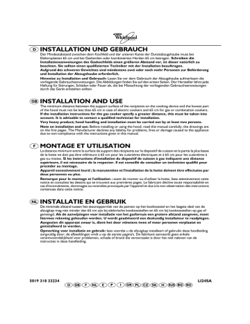 Hinweise zu Installation und Gebrauch: Lesen Sie vor dem Gebrauch der Abzugshaube aufmerksam die