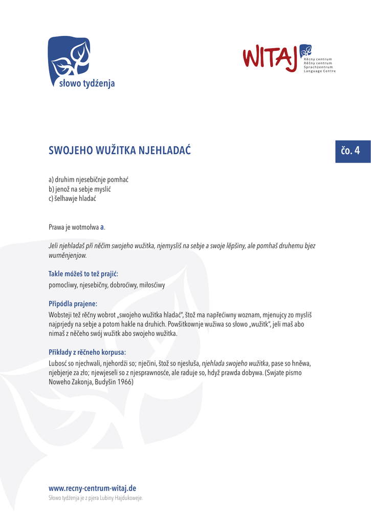 čo. 4 SWOJEHO WUŽITKA NJEHLADAĆ - WITAJ
