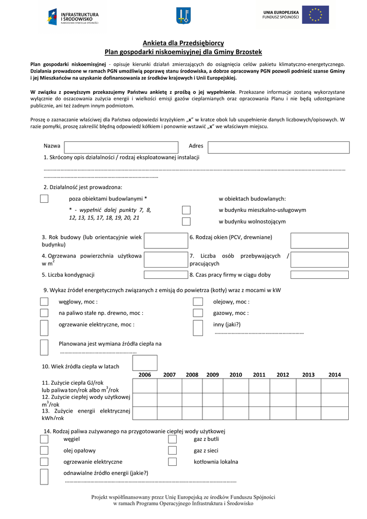 Ankieta dla Przedsiębiorcy Plan gospodarki niskoemisyjnej dla