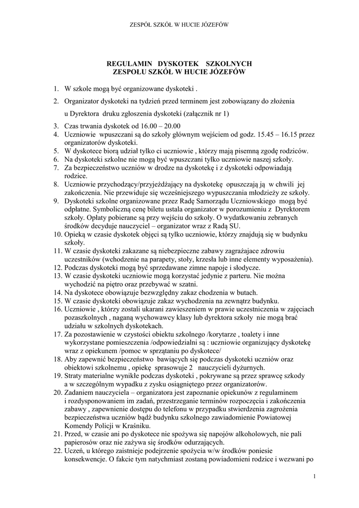 REGULAMIN DYSKOTEK SZKOLNYCH