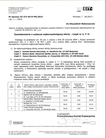Zawiadomienie o wyborze najkorzystniejszej oferty cz.2,7,9