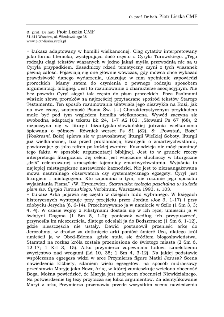 Łukasz. - prof. Dr hab. Piotr Liszka CMF