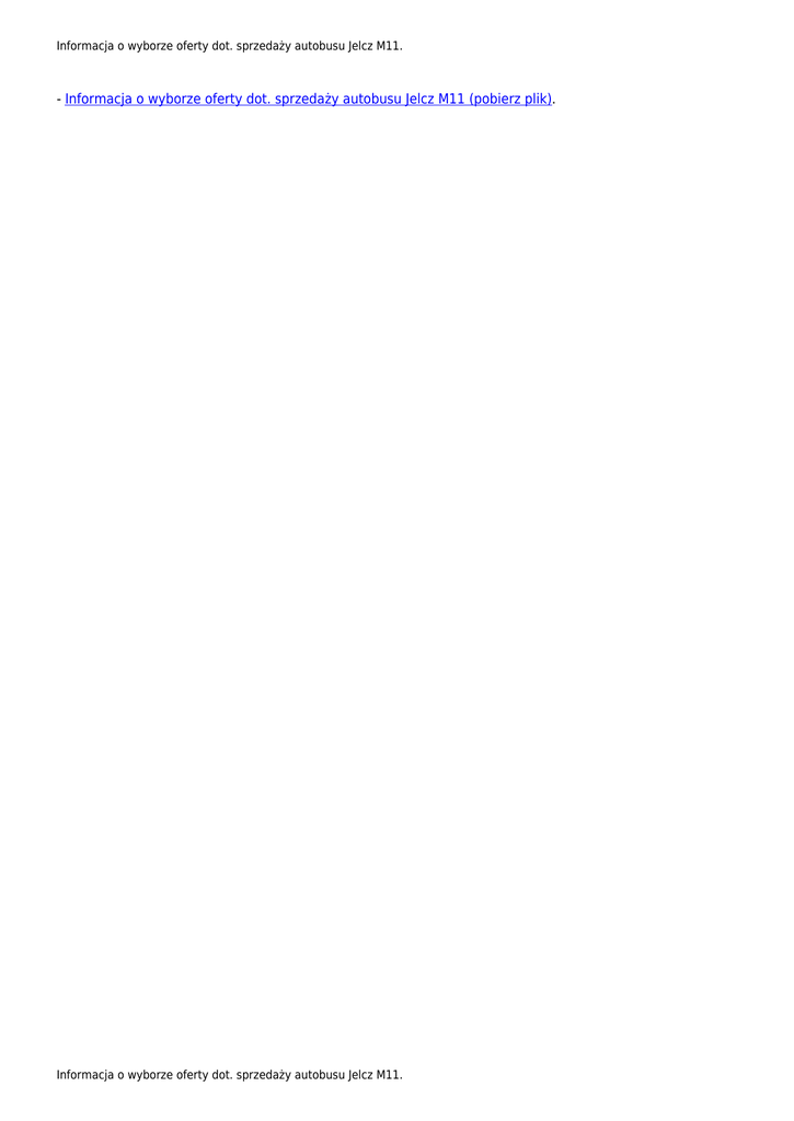 Informacja o wyborze oferty dot. sprzedaży autobusu Jelcz M11. - Informacja o wyborze oferty dot. sprzedaży autobusu Jelcz M11 (pobierz plik). Informacja o wyborze oferty dot. sprzedaży autobusu Jelcz M11.