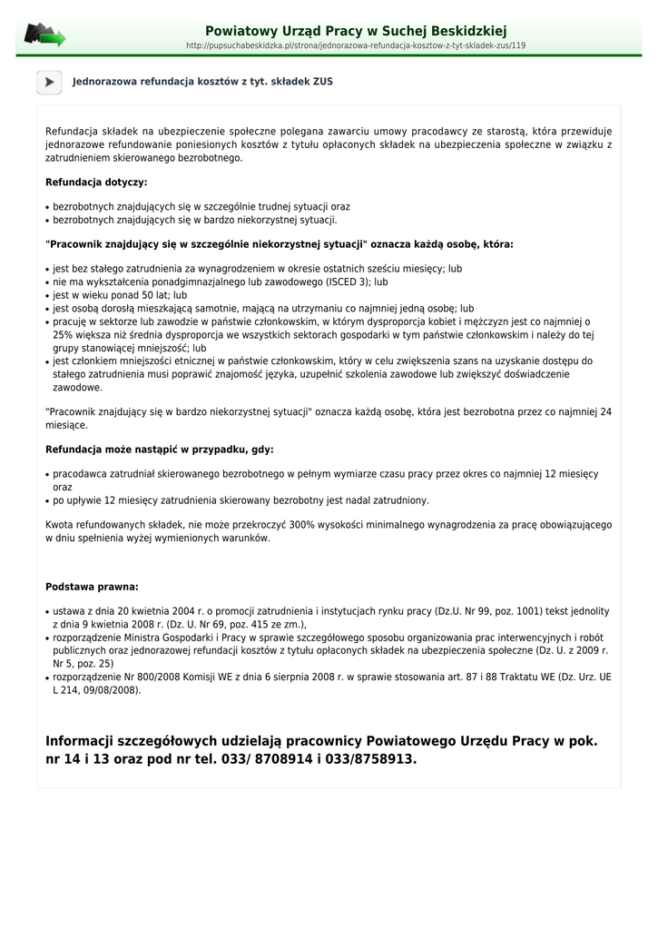 Powiatowy Urząd Pracy w Suchej Beskidzkiej Informacji