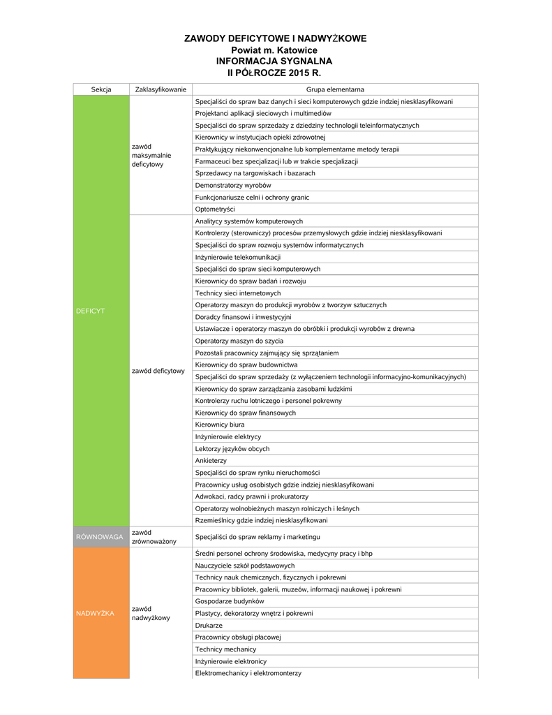 ZAWODY DEFICYTOWE I NADWYŻKOWE Powiat m. Katowice