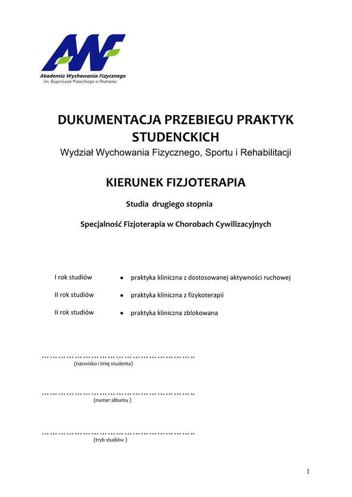 Dziennik praktyk studenckich – wprowadzająca praktyka kliniczna