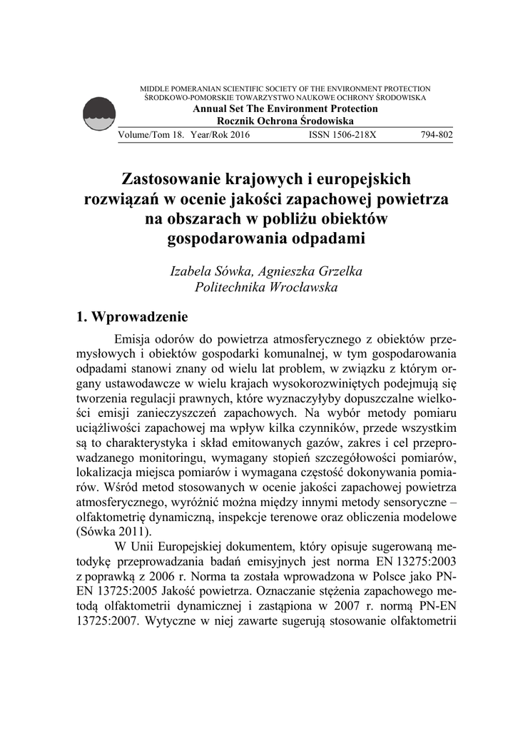PDF (Polish) - Rocznik Ochrona Środowiska