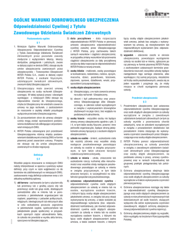 Ogólne warunki dobrowolnego Ubezpieczenia Odpowiedzialności