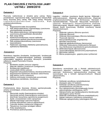 plan ćwiczeń z patologii jamy ustnej 2009/2010