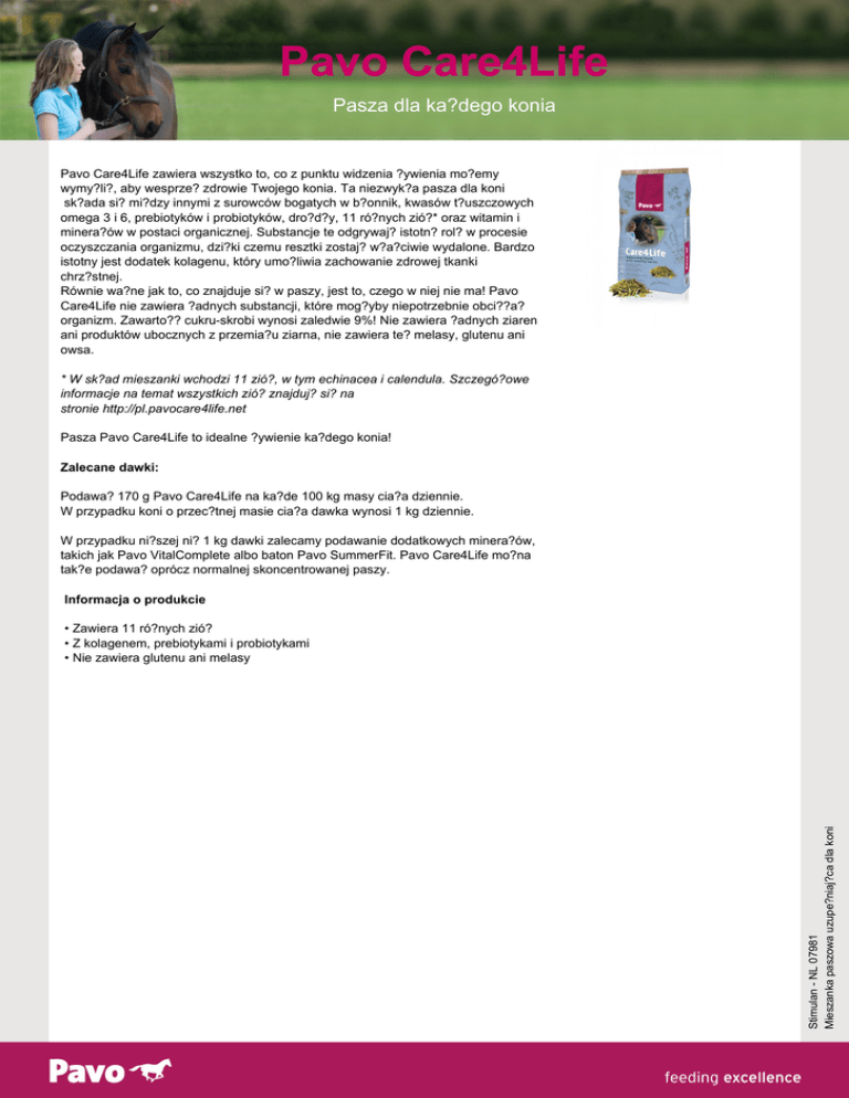Pasza Pavo Care4Life to idealne ?ywienie ka?dego konia!
