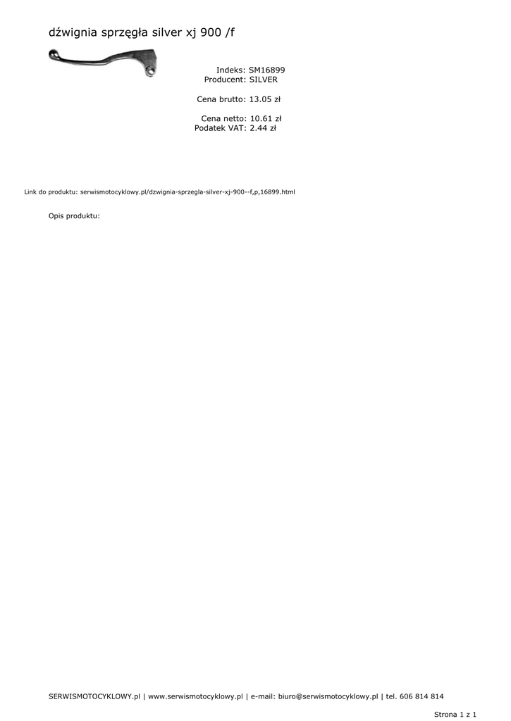 dźwignia sprzęgła silver xj 900 /f Indeks: SM16899 Producent: SILVER Cena brutto: 13.05 zł Cena netto: 10.61 zł Podatek VAT: 2.44 zł Link do produktu: serwismotocyklowy.pl/dzwignia-sprzegla-silver-xj-900--f,p,16899.html Opis produktu: SERWISMOTOCYKLOWY.pl | www.serwismotocyklowy.pl | e-mail: [email protected] | tel. 606 814 814 Strona 1 z 1