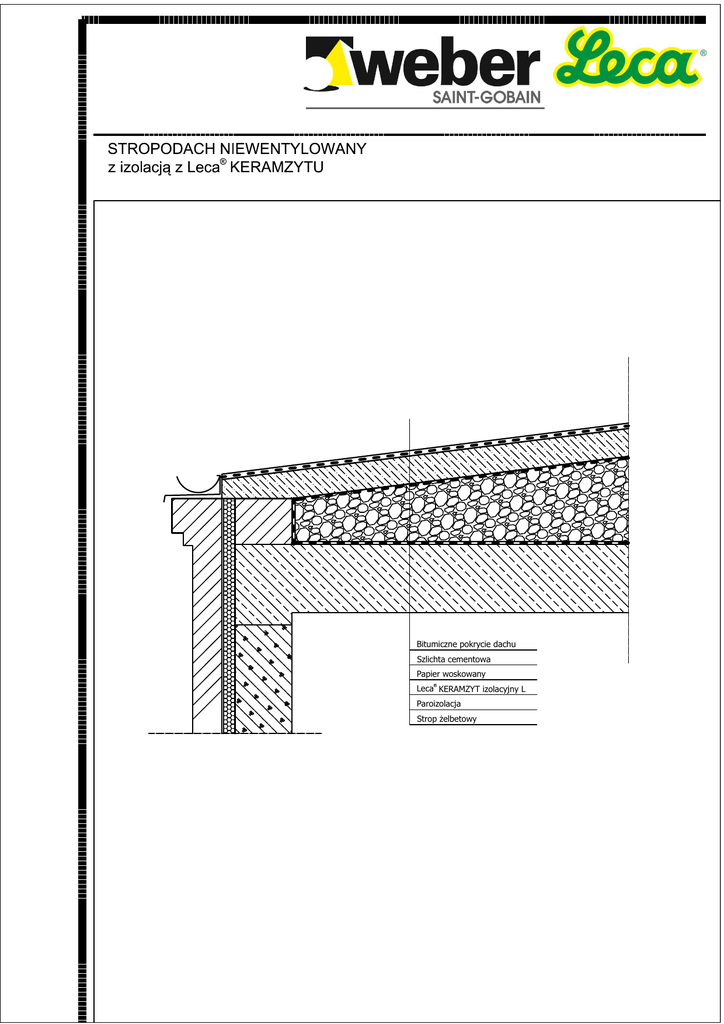 Bitumiczne pokrycie dachu Szlichta cementowa Papier woskowany Leca KERAMZYT izolacyjny L Paroizolacja