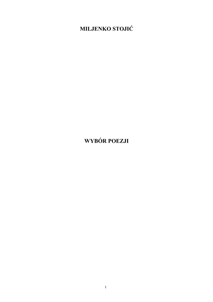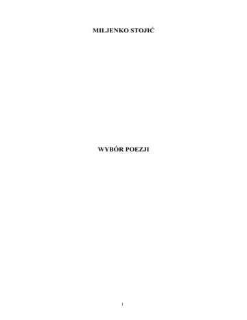 MILJENKO STOJIĆ WYBÓR POEZJI 1 Tłumaczenie: Mirosłav Bochenek ISBN 83-7629-041-3 2001. Zakonu Pijarów ul. Pijarska 2 31-015 Kraków Polska tel.: 0048-12-422-67-59 faks: 0048-12-422-67-40 medziugorje(at)ipl.net www.medziugorje.ipl.net 2 Mimo wszystko 3 GODZINY GORYCZY Cisza, spojrzenie ucieka już nie wiem, co się dzieje. Jeszcze wczoraj widziałem tu kwiaty dzisiaj już zasłonięte nadeszły godziny goryczy. Każdy z powagą gromadzi dobytek, dokądś, myślę, zmierza boję się i chciałbym obudzić aniołka który gdzieś w kącie drzemie. Mgła opada, zacierając kontury ludzi i rzeczy, a więc czeka nas podróż kto wie, jak długa aż odnajdziemy światło teraz ledwie migocące. 4 MIMO WSZYSTKO Ciepły, łagodny deszcz przenika noc i całego mnie szukam twoich rąk, przyjacielu, by jak swoje wystawić je na deszcz, być może zmyje z nich przeszłość. Poezja utkana ze wspomnień i niepewny spokój zbyt długo płakały w nas. Ale deszcze mijają i świt przegnał noc a ciebie nie ma, składam ręce ze smutkiem cofam do siebie. A jednak, mimo wszystko, przyjacielu, wciąż mam nadzieję, że nadejdziesz i czekam na ciebie z wiosną w oczach. 5 NIE BYĆ SAM Jest wiosna, pełna kwiatów i pragnień, by ciało ożywiła świeża krew. Bez zbędnych pytań, ufnie wychodzimy na łąkę w sercu. Bawimy się jak dzieci, z zapałem, zwyczajnie, szczerze, serdecznie. Pokój osadza się jak plaster na każdym bólu, każdym złym wspomnieniu. Wiemy, co to przyjaźń i uczucie, jest ktoś, kto zmęczony na ciebie czeka. 6 PRZYJACIELE Odpoczęli na ławce w parku, bez wstydu rozpakowali swoją biedę i dzielą się nią szczodrze. 7 CHWILA ŻYCIA Jest noc, słucham przejeżdżających tramwajów piszę kolorową widokówkę. Ktoś gdzieś na mnie czeka, zastanawia się, czy dam jakiś znak. Otacza mnie pokój, niebielona historia jego ścian, stos książek na półce. 8 WĄTPLIWOŚĆ Dziś wieczorem nie mogę wyznać ani radości, ani bólu. Długo składałem swoją układankę a wtedy przyszli oni i ją rozrzucili z łatwością, jednym ruchem ręki. Do kogo mam się zwrócić dziś wieczorem? 9 NIE WIERZ MI, BOŻE I wtedy, gdy w roztargnieniu będę gasił światło i wtedy, kiedy będę twierdził, że mnie tu nie ma, że wyjechałem proszę Cię: nie wierz mi, Boże. To tylko mój mur, którego chwilowo nie mogę zburzyć, to tylko wezbrany ból, który podstępnie zasłania mi oczy. Ty jesteś moim oddechem i ciepłem, głosem, który nie ginie we mgle jesteś moim zamiarem i decyzją, dobrym i oddanym przyjacielem więc proszę Cię: nie wierz mi, Boże. 1 PYTANIE Kiedy wieczorem zmęczony zamykasz oczy i robisz rachunek dnia czy masz jeszcze tyle siły by oddzielić dobro od zła stawić czoło porażkom i uśmiechnąć się jakby nic złego się nie stało? Jutro znów zacznie się nowy dzień będą cię kusić ludzie, rzeczy i zdarzenia jeśli nie przygotowałeś dla nich gościnnego pokoju rozpełzną się po tobie będzie ci trudno to pozbierać i nie będziesz już pewny czego możesz się spodziewać. Nie słuchaj przejeżdżających tramwajów, mają już dawno wyznaczony tor, a ty jesteś jednym z tych którzy nie boją się odpowiedzialności, którzy potrafią stanąć na progu domu by przywitać obcego chlebem i solą. Tyle że – mówię ci, dziś wieczorem musisz odpowiedzieć, czy masz jeszcze na to siłę. 1 WIZYTA za drapaczem chmur baraki w błocie nie znam nikogo z ludzi, którzy zebrali się na zewnątrz i którzy są w środku opowiadają mi, że ich dzieci bawią się razem z dziećmi z drapacza chmur wspólnie chodzą do szkoły a oni przybyli tu z Bośni, z... byli w obozach a teraz są tutaj nie mają odwagi pytać o przyszłość rozdajemy jakieś czekolady ci moi chcieliby to fotografować ja nie mogę czuję się śmieszny i zdezorientowany dla tych tutaj jestem bogato ubrany (tak naprawdę – tylko przeciętnie) nie muszę prosić o szampon, proszek do prania... patrzę w te twarze na końcu ściskają mi rękę a ja pragnę tylko jednego być dla nich Bogiem tylko tak długo, ile trzeba, by wymówić zaklęcie: niech od razu wszystko będzie inne 1 ONI I MY Boże, ich nie interesuje nasze życie ich nie interesują nasze dzieci ich nie interesuje nasza przyszłość wiem, zepsuliśmy ich zabawkę musieliśmy skrywała naszą ciemność tej zabawki nie można ( i nie wolno) naprawić oni wciąż wierzą w jej fałszywy blask jak smutno, o Boże 1 POCZĄTEK DNIA czarne litery w gazecie czarna kawa czarne klepsydry chorwackich żołnierzy modlitwa i wiara że to nie będzie daremne Boże, jak ja nienawidzę takiego początku dnia 1 KIEDY OJCZYZNA PŁACZE w obcym dalekim mieście późną nocą układam się do snu przez zamknięte okno słyszę znany głos to moja ojczyzna cicho płacze gdy nikt jej nie widzi i z nie drwi z niej jej dzieci wciąż kradnie śmierć choć tak stara się je ukryć jest późno, nie mogę spać chyba powinienem gdzieś iść 1 WIERSZ DLA NIEZNANEGO MŁODZIEŃCA pada śmiercionośny deszcz ołowiu okrutny, bezwzględny jego spięte ciało pragnie słońca zabawy i wolności czy ci, którzy zsyłają ten deszcz mają serca czy są tacy sami jak my czy ich dzieci śmieją się tak jak nasze słowa wyglądają bezsensownie słychać tętent i trzask on przyczajony za murem wstydzi się samego siebie czuje, że musi wyjść z ukrycia jego przyjaciele już tu są dzieci, doroślejące w jednej chwili złorzeczą deszczowi gotowe na wszystko, jak skały w morzu 1 MODLITWA Z ROWU dziś wieczorem, gdy będziesz przechodził przez okopy przyjdź, Boże, i do mojego opowiem Ci wszystkie najpiękniejsze historie, które znam będę szczery jak nigdy obiecam, że nie będę taki jak ci po drugiej stronie będę walczył jak Ty kiedy batem wyganiałeś handlarzy ze świątyni a przecież nie miałeś w sobie nienawiści zrobiłeś tylko to co powinieneś zrobić dziś wieczorem zajrzyj, o Boże, i do mojego okopu choć nie będę m