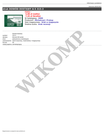 druk DOWÓD DOSTAWY A-5 315-3