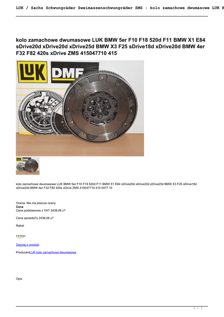 kolo zamachowe dwumasowe LUK BMW 5er F10 F18 520d F11