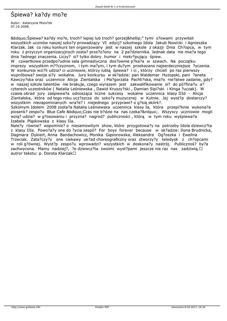 Śpiewa? ka?dy mo?e - Zespół Szkół Nr 1 w Krośniewicach