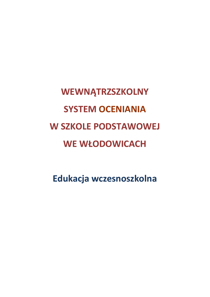 WEWNĄTRZSZKOLNY SYSTEM OCENIANIA W SZKOLE