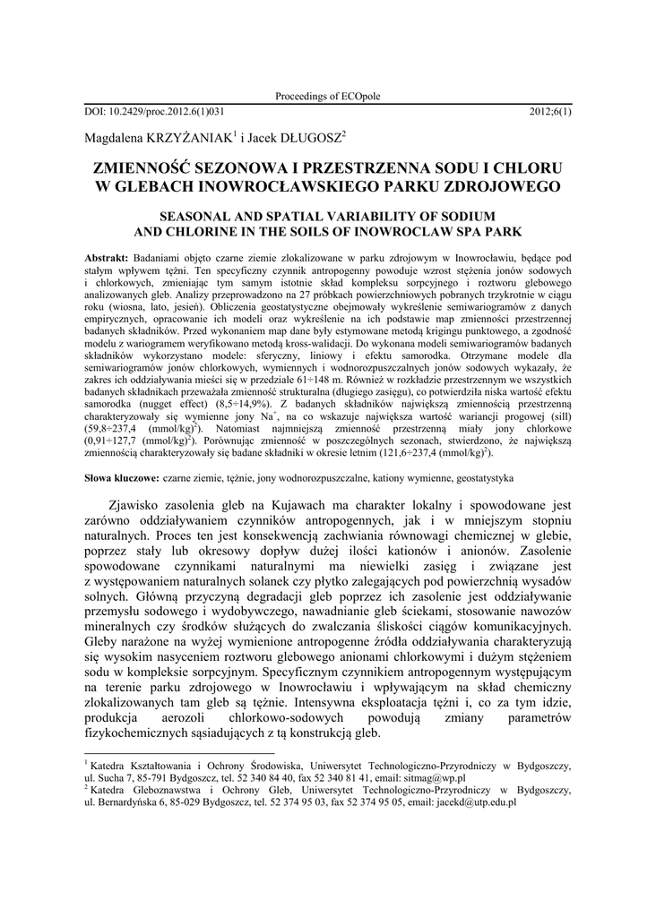 zmienność sezonowa i przestrzenna sodu i chloru w glebach