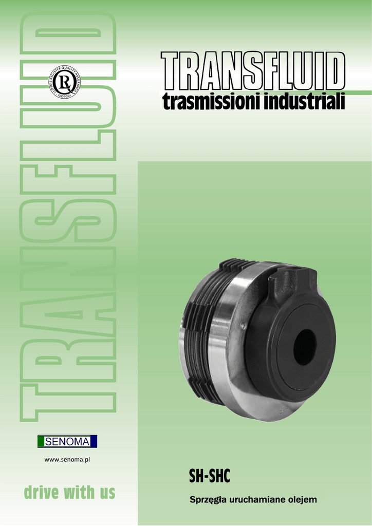 www.senoma.pl Sprzęgła Transfluid uruchamiane olejem są urządzeniami typu mokrego z budowanymi z tarcz wielokrotnie spiekanych, zaprojektowanymi do pracy w oleju, uruchamianymi ciśnieniem oleju. Zalety sprzęgieł Transfluid uruchamianych olejem: INNE ZALETY: 1. Brak konieczności regulacji z tytułu zużycia, ponieważ tłok przesuwa się w sposób automatyczny kompensując zużycie. 6. Brak zużycia tarcz spowodowanego nieprawidłowym ustawieniem ponieważ uruchamianie hydrauliczne nie wymaga regulacji. 2. Stały moment obrotowy przez cały okres trwałości tarcz ciernych, wynikający z braku potrzeby dokonywania okresowych regulacji. 7. Długa żywotność tarcz ciernych co ma duże znaczenie w sytuacji, gdy przerwa w działaniu może powodować problemy na linii montażowej. 3. Niewielkie rozmiary w stosunku do zdolności przenoszenia momentu obrotowego, dzięki temu że zużycie tarcz nie wpływa na moment obrotowy i nie zachodzi potrzeba przestrzeni regulacji. Pozwala to na montaż sprzęgła w ciasnych miejscach przy jednoczesnej redukcji wymiarów urządzeń. - Przedstawione przepływy uruchamiające oleju obliczane są dla czasu włączenia wynoszącego 0, 1 s. Czas włączenia jest proporcjonalny do przepływu oleju. Zaleca się stosowanie smarowania wymuszonego. Przy braku możliwości zastosowania takiego rozwiązania dopuszcza się smarowanie rozbryzgowe, jeśli tarcze cierne zanurzone są na głębokość co najwyżej 8 mm. Jeśli przewody rurowe są minimalnej zalecanej średnicy należ y stosować olej o lepkości 5E lub mniej (w temp. 50°C). Przepływ oleju smarującego winien wynosić 1l/min x 10 KM dla obrabiarek i 2 l/min x 10KM dla przekładni pojazdów. 4. - Wysoka zdolność do przenoszenia momentu obrotowego, dzięki temu, że włączenie sprzęgła odbywa się pod wpływem ciśnienia oleju nie zaś ręcznie . Zjawisko to jest szczególnie wyraźne w większych sprzęgłach. - 5. Łatwe, zautomatyzowane sterowa nie zdalne uzyskiwane dzięki sterowaniu hydraulicznemu. Eliminuje to potrzebę stosowania skomplikowanych układów uruchamiających, co pozwala z kolei na łatwe wkomponowywanie w urządzenia wymagające cyklu półautomatycznego lub automatycznego. 2 Moment obrotowy przy 10kg/cm ciśnienia włączającego – włączenie przez przepływ oleju w czasie 0,1s Tylko na życzenie STANDARDOWY UKŁAD HYDRAULICZNY A B C D E F1 – F2 G H 2 – miska – filtr próżniowy – pompa – zawór nadmiarowy – zawór sterujący – sprzęgła – układ smarujący – zawór sterujący przepływem oleju smarującego * Do określenia podczas zamówienia – rowek klinowy UNI 6604-69 – DIN 6885/1 – D maks. dla rowka klinowego 6885/2 Tylko na życzenie – Wymiary mogą ulec zmianie bez uprzedzenia * Do określenia podczas zamówienia – rowek klinowy UNI 6604-69 – DIN 6885/1 – D maks. dla rowka klinowego 6885/2 Tylko na życzenie – Wymiary mogą ulec zmianie bez uprzedzenia 3 Sprzęgło pojedyncze bez kolektora Sprzęgło pojedyncze z kolektorem Do zastosowań w których zachodzi potrzeba umieszczenia układu podawania promieniowego w pewnej odległości od sprzęgła. Bardzo zwarta budowa. Zintegrowany układ podawania oleju. Brak konieczności stosowania „wiercenia lufowego” (rifle drilling) wału do sterowania. Układ podwójny tył - tył Bardzo zwarta budowa. Szczególnie odpowiednie dla przekładni biegu wstecznego lub skrzyń przekładniowych dwu- lub trzybiegowych Partner firmy Transfluid w Polsce: SENOMA Sp. z o.o. 40-153 Katowice, Aleja Korfantego 191 Tel. 032 730 30 30; Faks 032 730 30 33; [email protected]; [email protected] Układ podwójny tył – tył z integralnym kolektorem oleju Jedno sprzęgło spełnia rolę hamulca, drugie połączone jest z przekładnią.