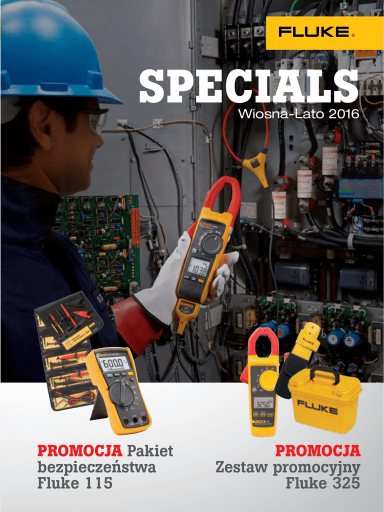 SPECIALS Wiosna-Lato 2016 PROMOCJA Pakiet bezpieczeństwa Fluke 115 PROMOCJA Zestaw promocyjny Fluke 325 Łatwa rejestracja: natychmiastowe przechwytywanie i monitorowanie odczytów Seria narzędzi do testowania Fluke 3000 FC łączy się z aplikacją mobilną Fluke Connect, co umożliwia dzielenie się wynikami pomiarów na żywo, monitorowanie odczytów na odległość, a także w znaczący sposób ułatwia pracę. • Dzięki Fluke Connect® to Twoje narzędzia znajdują się blisko paneli elektrycznych pod napięciem, a nie Ty • Wyizoluj pojedyncze wydarzenia lub nagrywaj wahania sygnału • Oszczędzaj pieniądze i czas, wykonując wiele pomiarów jednocześnie. Możesz mieć teraz zestaw w cenie P/N 4465618 FLK-A3000FC KIT 3000FC Bezprzewodowy multimetr cyfrowy a3000FC Bezprzewodowy moduł cegowy do pomiaru pradu przemiennego P/N 4401588 P/N 4401595 a3004FC Bezprzewodowy moduł cegowy do pomiaru pradu stałego P/N 4629301 v3000FC Bezprzewodowy moduł AC P/N 4401556 a3001FC Bezprzewodowy moduł cegowy do pomiaru pradu przemiennego iFlex™ P/N 4459439 v3001 FC Bezprzewodowy moduł FC do pomiaru napięcia stałego P/N 4459421 a3002FC Bezprzewodowy moduł do pomiaru pradu przemiennego/stałego P/N 4459442 t3000FC Bezprzewodowy moduł temperatury typu K P/N 4401563 a3003FC Bezprzewodowy moduł cegowy do pomiaru pradu stałego P/N 4629295 ir3000FC Konektor FC do 287/289/789 P/N 4460436 Dowiedz sie wiecej na stronie www.flukeconnect.pl Multimetr z funkcją testowania izolacji Fluke 1587 FC to jedno narzędzie do konserwacji zapobiegawczej. Nowość • Cyfrowy tester izolacji o wysokiej wydajności oraz w pełni wyposażony cyfrowy multimetr prawdziwej wartości skutecznej • Przechowywanie pomiarów w pamięci za pośrednictwem aplikacji Fluke Connect® eliminuje konieczność ręcznego zapisywania wyników, zmniejszając ryzyko popełnienia błędu i zapisuje rezultaty, co pozwala śledzić dane historyczne • Kompensacja temperatury umożliwia ustalenie dokładnych linii bazowych oraz umożliwia dokonanie istotnych porównań danych historycznych • Testy PI/DAR z wykresami TrendIt™ pozwalają szybciej identyfikować problemy z zanieczyszczoną lub zawilgoconą izolacją P/N 4691215 Przeanalizuj zużycie energii i odkryj problemy z jakością energii Trójfazowy rejestrator energii 1730 Najlepszy wybór do badań energii i analizowania obciążeń. • Odkryj czas i miejsce zużycia energii • Porównuj różne wyniki w dowolnym momencie • Szybko rozpoznaj specyficzne punkty strat energii P/N 4276693 Trójfazowe rejestratory energii Fluke 1736 i 1738 Idealne do podstawowych analiz zasilania i jego jakości. Nowość • rejestrowanie i zapisywanie napięcia, prądu, mocy, harmonicznych oraz powiązanych wartości jakości zasilania • dostęp do zarządzania i analizy dużych partii danych • w pełni zintegrowane oprogramowanie do raportowania • dostęp oraz możliwość wysyłania danych zdalnie poprzez sieć wifi lub aplikację Fluke Connect® 1736 P/N 4534519 1738 P/N 4563577 Kamery termowizyjne Fluke: wydajność stworzona do rozwiązywania codziennych problemów w pracy Kamery termowizyjne Fluke serii TiS Stworzone, by zapewnić wydajność oraz funkcje, które pomogą w łatwy i szybki sposób rozpoznać problemy, zanim zamienią się w kosztowne awarie. • Poprawiona rozdzielczość, do 2,5 raza więcej pikseli, w porównaniu do poprzednich modeli TiS10 P/N 4697036 TiS20 P/N 4697049 Wyjątkowa Promocja TiS45 + iPad® Apple® Aby poznac wiecej wyjatkowych cech i specyfikacje naszych produktów, zajrzyj na nasza strone internetowa www.fluke.pl/TiS Darmowy Apple® iPad® Korzystaj z najlepszych rozwiązań w dziedzinie termowizji dzięki DARMOWEMU urządzeniu Apple® iPad® i aplikacji Fluke Connect®. P/N 4752605 FLK-TIS45 9HZ/IPAD * F irma Apple® nie jest uczestnikiem ani sponsorem tej promocji. Wróć bezpiecznie do domu dzięki firmie Fluke Bezpieczeństwo podczas pomiarów elektrycznych nie oznacza skomplikowanej technologii. Jest to proste połączenie: • uważnego planowania, • bezpiecznego działania, • u żywania odpowiednich narzędzi w odpowiedni sposób. Jako lider w branży testowania i pomiarów z ponad 65-letnim doświadczeniem firma Fluke proponuje rozwiązania, których potrzebujesz do bezpiecznego wykonywania pracy. Specjalna promocja na zestawy z wielofunkcyjnymi testerami instalacji firmy Fluke Szybki, lekki, łatwy w użyciu, trwały i niezawodny tester instalacji. Korzystaj ze wspaniałych ofert na wszystkie modele! Fluke 1652C + Fluke 323 GRATIS Fluke 1653B + Fluke 324 GRATIS + oprogramowanie Fluke DMS GRATIS Fluke 1654B + Fluke 325 GRATIS + oprogramowanie Fluke DMS GRATIS Fluke 1652C05-CLAMPKIT* Fluke 1653B05-CLAMPKIT/D* Fluke 1654B05-CLAMPKIT/D* * Promocja obowiązuje do 30.06.2016 lub do wyczerpania zapasów. 1652C 1653B 1654B Szybki test pętli wysokoprądowych • • • Niezawodny test pętli 3-żyłowej • • • Bez skomplikowanego wielopoziomowego menu: obrotowy przełącznik wyraźnie wskazuje wybraną funkcję • • • Prosta kompensacja przewodu testowego: adapter zerujący • • • • Rozszerzona pamięć • Rozdzielczość mΩ: rezystancja pętli i linii Różne tryby testu RCD z regulacją prądu - możliwość wprowadzania indywidualnych ustawień • • Wskazania PASS/FAIL (wynik pozytywny/negatywny) dla testów RCD Profesjonaliści z całego świata wybierają przyrządy Fluke, aby zapewniać swoim firmom ciągłość operacyjną Odwiedź nasze Centrum rozwiązań online, aby dowiedzieć się, dlaczego warto wybrać Fluke! www.Fluke.pl/dlaczegoFluke • • Test czułych na wygładzony prąd stały urządzeń RCD • • • Mierniki cegowe Fluke: odczyty, na których można polegać Nowe mierniki cęgowe z serii Fluke 370 FC to jedyne mierniki prądu zmiennego, oferujące rejestrowanie danych i bezpieczne oraz zdalne pomiary za pomocą elastycznej sondy prądowej Nowość • Rozwiązuj problemy z pojedy
