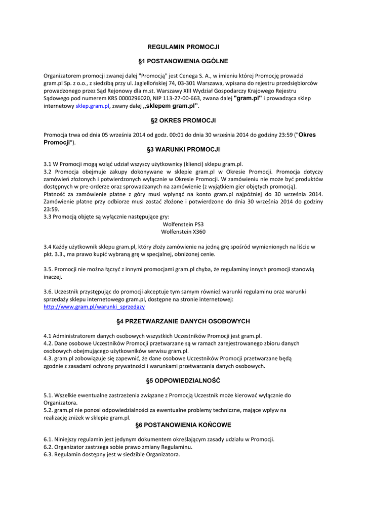 3.1 W Promocji mogą wziąć udział wszyscy użytkownicy (klienci) sklepu gram.pl.
