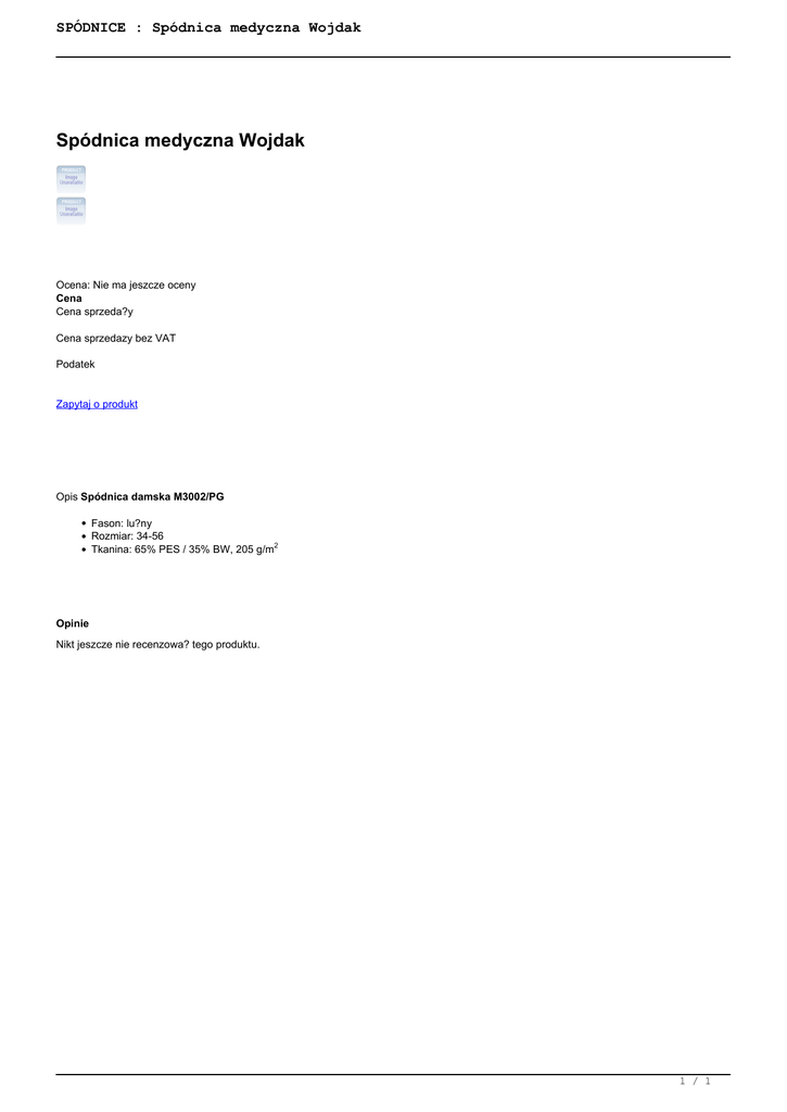 SPÓDNICE : Spódnica medyczna Wojdak Spódnica medyczna Wojdak Ocena: Nie ma jeszcze oceny Cena Cena sprzeda?y Cena sprzedazy bez VAT Podatek Zapytaj o produkt Opis Spódnica damska M3002/PG Fason: lu?ny Rozmiar: 34-56 Tkanina: 65% PES / 35% BW, 205 g/m2 Opinie Nikt jeszcze nie recenzowa? tego produktu. 1 / 1 Powered by TCPDF (www.tcpdf.org)