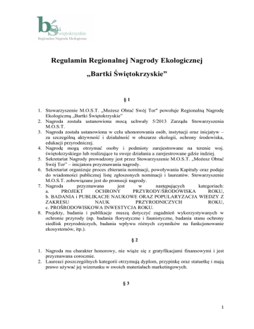Regulamin Regionalnej Nagrody Ekologicznej „Bartki Świętokrzyskie”