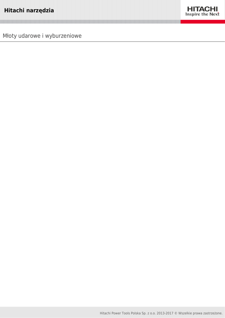 Hitachi narzędzia Młoty udarowe i wyburzeniowe Hitachi Power Tools Polska Sp. z o.o. 2013-2017 © Wszelkie prawa zastrzeżone.