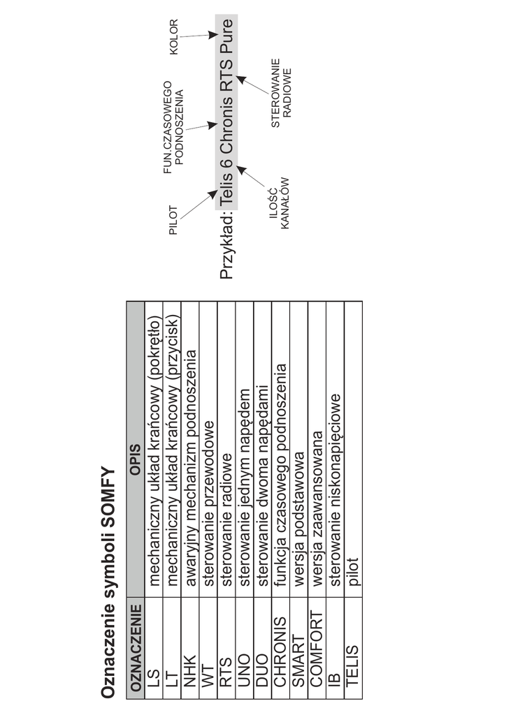 6.7 mechaniczny układ krańcowy (pokrętło) mechaniczny układ krańcowy (przycisk) awaryjny mechanizm podnoszenia sterowanie przewodowe sterowanie radiowe sterowanie jednym napędem sterowanie dwoma napędami funkcja czasowego podnoszenia wersja podstawowa wersja zaawansowana sterowanie niskonapięciowe pilot OPIS Do podanych cen należy doliczyć podatek VAT LS LT NHK WT RTS UNO DUO CHRONIS SMART COMFORT IB TELIS OZNACZENIE Oznaczenie symboli SOMFY FUN.CZASOWEGO PODNOSZENIA KOLOR 470,00 599,00 868,00 ILOŚĆ KANAŁÓW STEROWANIE RADIOWE Przykład: Telis 6 Chronis RTS Pure PILOT 1805216 Telis 6 Chronis RTS Silver AUTOMATYKA SŁONECZNA 9013707 Sunis Indoor WireFree RTS - radiowy czujnik słoneczny 9013708 Thermosunis Indoor WireFree RTS - radiowy czujnik słoneczny i temperatury