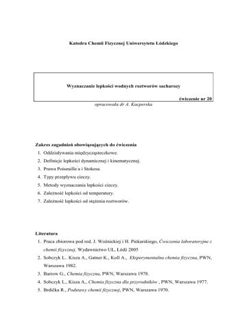 Wyznaczanie lepkości wodnych roztworów sacharozy