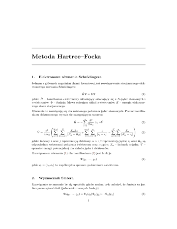 wielo-elektronowe do całek jedno- i dwu-elektronowych. Założenie o ortonormalności spinorbitali jest właściwym podejściem ponieważ z własności wyznacznika wynika, że nie
