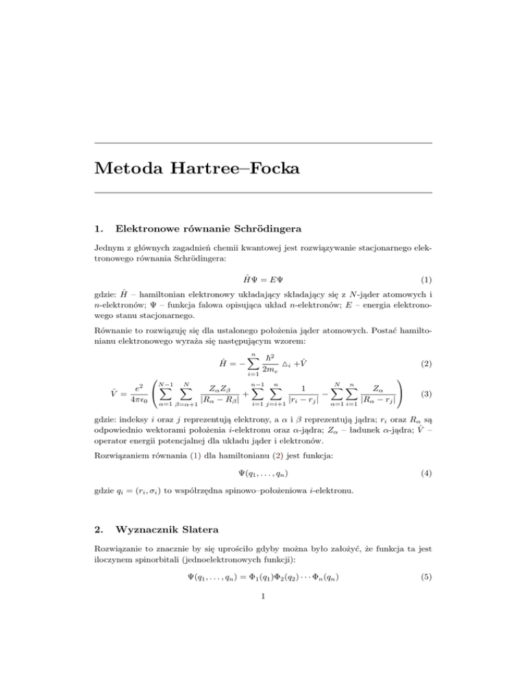 gdzie: indeksy i oraz j reprezentują elektrony, a α i β reprezentują jądra; ri oraz Rα są