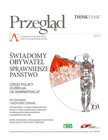 Przeglad Akademia Zarządzania Instytucjami Publicznymi 2014 ŚWIADOMY OBYWATEL SPRAWNIEJSZE PAŃSTWO Czego Polacy oczekują od administracji? Wyzwania i kierunki zmian: informatyzacja i e-usługi bezpieczeństwo danych kultura organizacyjna nastawiona na dialog partycypacja społeczna zarządzanie przez cele Nowe standardy zarządzania w sektorze publicznym: przykłady wdrożeń Publikacja Akademii Zarządzania Instytucjami Publicznymi prowadzonej przez Krajową Szkołę Administracji Publicznej i ośrodek dialogu i analiz THINKTANK wnioski » Rekomendacje THINKTANK 1. Informatyzacja urzędów i wdrażanie e-usług to obecnie jedno z głównych wyzwań administracji publicznej w Polsce. Aby jednak elektroniczne usługi działały skutecznie, musi być poprzedzane badaniami oczekiwań obywateli, za co powinna odpowiadać administracja centralna i samorządowa. Co więcej, należy zadbać, aby wdrażaniu rozwiązań e-administracji towarzyszyły weryfikacja i ulepszanie usług świadczonych metodą tradycyjną. Drugim wyzwaniem, przed którym stoi administracja, jest partycypacja publiczna, czyli stałe włączanie obywateli w procesy zarządcze. Udany dialog władzy z obywatelami powinien mieć charakter ustrukturyzowanego projektu, który ma swoje cele i mierniki Akademia Zarządzania Instytucjami Publicznymi skuteczności. Takie podejście pozwoli bowiem uniknąć podejmowania działań pozornych. 3. Ważnym zadaniem dla jednostek administracji publicznej pozostaje budowanie spójnej kultury organizacyjnej, która w obliczu coraz bardziej ograniczonych środków finansowych będzie służyła lepszej efektywności pracy. Można to uczynić poprzez przyjmowanie dokumentów strategicznych i wdrażanie Gwarantujemy wzrost kompetencji zarządczych liderów i menedżerów administracji centralnej i samorządowej. Stwarzamy przestrzeń do wymiany wiedzy i doświadczeń między instytucjami publicznymi. zarządzania procesowego, ale również wykorzystując potencjał ludzi, którymi administracja już dysponuje. Zwiększanie efektywności działania urzędów można osiągnąć dzięki systemowemu podejściu do zarządzania kompetencjami ich pracowników. Warto jednak, aby wprowadzaniu modeli kompetencyjnych (określających, co urzędnik powinien wiedzieć i jakie powinien mieć umiejętności) towarzyszyło tworzenie globalnych standardów – wyznaczenie strategicznego kierunku, w którym ma podążać Zapraszamy na trzeci cykl warsztatów! państwo. Do tej wizji można wtedy dopasowywać kompetencje w administracji publicznej. Jednocześnie wdrażając odgórnie opracowane modele kompetencyjne, [email protected] trzeba uwzględniać specyfikę poszczególnych instytucji. 4. Nastawionej na efektywność kulturze organizacyjnej może też służyć rozwój komunikacji wewnętrznej. Można ją osiągnąć m.in. poprzez zakreślenie przez lidera spójnej wizji rozwoju i misji instytucji, co przyczynia się do większej identyfikacji zatrudnionych z organizacją, a w rezultacie do bardziej otwartej komunikacji pracowników i kadry zarządzającej. | Przegląd 2014 2. REKOMENDACJE muszą odpowiadać na potrzeby użytkowników. To zaś oznacza, że ich projektowanie Wydawcą publikacji jest ośrodek dialogu i analiz THINKTANK. Naszą misją jest inspirowanie debaty publicznej w Polsce oraz dostarczanie liderom biznesu i administracji publicznej wiedzy i narzędzi do podejmowania lepszych decyzji. Najlepsze polskie praktyki popularyzujemy za granicą. www.mttp.pl, www.ttpolska.eu 4 W iedza zarządcza w sferze publicznej Jan Pastwa 6W stronę lepszego e-government Zbigniew Derdziuk 8„Być albo nie być” administracji Jacek Kozłowski 15 18 21 warsztat y 12 I Budując dojrzałe e-usługi II Więcej władzy w ręce obywateli III N owa polityka personalna IV C el: dobra komunikacja 24Warsztaty drugiego cyklu Akademii – podsumowanie nowe idee trend , i relac y je ul. Mińska 25, 03-808 Warszawa tel. 22 628 20 04, 22 628 04 10, faks 22 628 04 12 e-mail: [email protected] Partnerzy zarządzający: dr Małgorzata Bonikowska, [email protected] Paweł Rabiej, [email protected] Dyrektor wykonawczy: Michał Smagowicz, [email protected] Dyrektor artystyczny: Katarzyna Zbytniewska, [email protected] Grafik: Monika Chylińska Programy i projekty THINKTANK: Urszula Borzym [email protected], tel. kom. 608 639 956 Marcin Dąbrowski [email protected], tel. kom. 608 638 258 Alicja Defratyka [email protected], tel. kom. 600 330 437 Renata Mizińska [email protected], tel. kom. 608 885 284 THINKTANK SOCIETY Klub dla liderów i Menedżerów biznesu i adMinistracji publicznej THINKTANK SOCIETY: Mirosława Misiewicz [email protected], tel. kom. 505 076 123 Komunikacja: Joanna Krobicka [email protected], tel. kom. 608 699 375 Marta Murawska, [email protected] Inspiruje do lepszego, bardziej efektywnego zarządzania i przywództwa w firmach Multimedia: Rafał Szyc, [email protected] i instytucjach. Pozwala na wymianę doświadczeń w gronie praktyków i ekspertów Biuro THINKTANK i dystrybucja publikacji: Justyna Budzyńska-Wasiak, [email protected] tel. 22 628 20 04, tel. kom. 608 593 632 oraz zachęca do poszukiwania nowych metod działania i kreatywnego myślenia. Ułatwia nawiązywanie interesujących kontaktów zawodowych i osobistych. THINKTANK Sp. z o.o. KRS 0000325641, NIP 701-01-83-649, REGON 141839360 Zarząd: Paweł Rabiej (prezes) dr Małgorzata Bonikowska (członek zarządu) Partnerem publikacji jest Ośrodek Rozwoju i Innowacji Krajowej Szkoły Administracji Publicznej, której misją jest kształcenie i przygotowywanie do służby publicznej członków korpusu służby cywilnej oraz kadr wyższych urzędników dla administracji Rzeczypospolitej Polskiej. Krajowa Szkoła Administracji Publicznej, Ośrodek Rozwoju i Innowacji ul. Wawelska 56, 00-922 Warszawa, tel. 48 22 60 80 111, e-mail: [email protected] Koncepcja publikacji: dr Małgorzata Bonikowska, Zbigniew Derdziuk, Jacek Kozłowski Opracowanie t