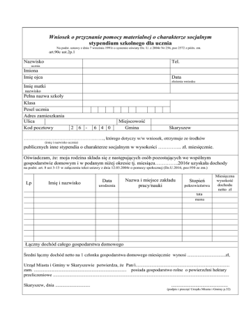 publicznych inne stypendia o charakterze socjalnym w wysokości ………….. zł. miesięcznie.