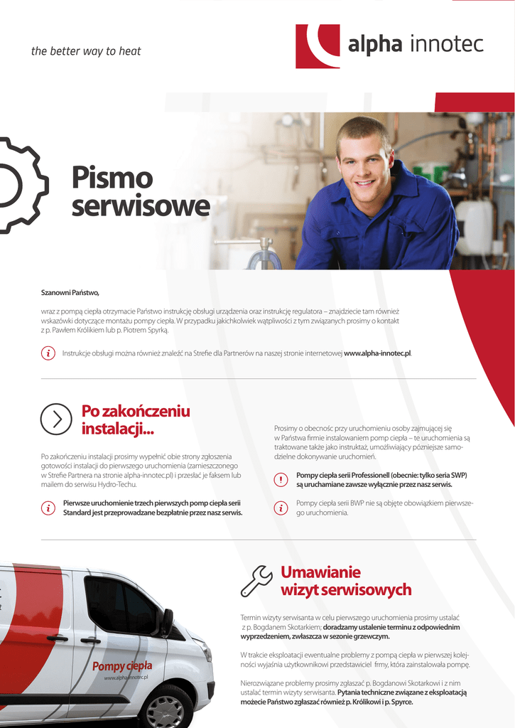 Pismo serwisowe - Pompy ciepła alpha innotec