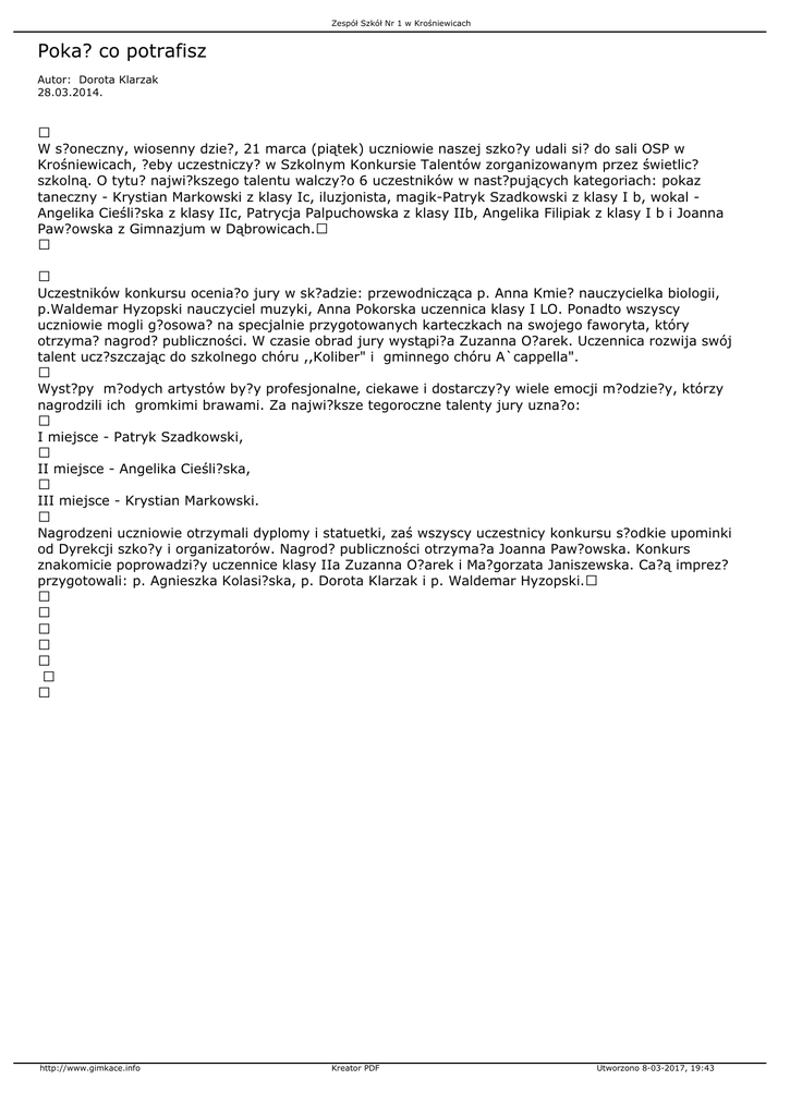 Poka? co potrafisz - Zespół Szkół Nr 1 w Krośniewicach