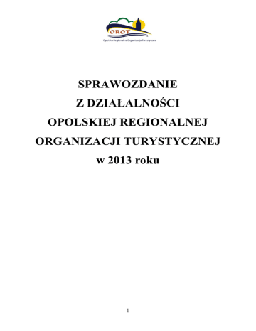 SPRAWOZDANIE Z DZIAŁALNOŚCI OPOLSKIEJ REGIONALNEJ ORGANIZACJI TURYSTYCZNEJ w 2013 roku 1 1. Udział w imprezach oraz organizacja stoisk wystawienniczych Śląska Opolskiego w kraju i za granicą: styczeń 2013 r. - ,,REGIONTOUR” w Brnie (Republika Czeska), luty 2013 r. – „HOLIDAY WORLD” w Pradze (Republika Czeska), luty/marzec 2013 r. – „UTAZAS” w Budapeszcie (Węgry), marzec 2013 r. – „ITB” w Berlinie (Niemcy), marzec 2013 r. – „INFOTOUR” w Hradec Kralove (Republika Czeska), marzec 2013 r. – „GLOB” w Katowicach, kwiecień 2013 r. – „MIĘDZYNARODOWE TARGI TURYSTYKI WIEJSKIEJ I AGROTURYSTYKI” w Kielcach, maj 2013 r. – „TOURTEC” w Jeleniej Górze, maj 2013 r. – „W STRONĘ SŁOŃCA” w Opolu, wrzesień 2013 r. – „PIKNIK Z FUNDUSZAMI EUROPEJSKIMI” w Opolu, październik 2013 r. – „TOUR SALON” w Poznaniu. Działalność wystawiennicza i targowa, podobnie do lat ubiegłych, oparta była na: promocji atrakcyjności turystycznej Śląska Opolskiego podczas najważniejszych i największych imprez krajowych (Poznań), imprez w sąsiednich województwach ze względu na duże zainteresowanie ofertą Opolszczyzny (Jelenia Góra, Katowice); promocji atrakcyjności turystycznej Śląska Opolskiego w Republice Czeskiej i w Niemczech (najwięcej turystów zagranicznych odwiedzających nasz Region, według badań ruchu turystycznego przeprowadzonych przez OROT, pochodzi właśnie z tych krajów) oraz na Węgrzech. prezentacji wydawnictwa „VisitOpolskie – katalog produktów turystycznych” niezależenie od organizacji wystawiennictwa województwa opolskiego na targach w kraju i za granicą, OROT przekazywać będzie materiały informacyjno – promocyjne na inne imprezy turystyczne organizowane przez UMWO i innych partnerów. 2 2. Wydawnictwa: Przygotowanie wybranych ofert z „Katalogu Produktów VisitOpolskie” w wersji niemieckiej na płyty CD (głownie promocja w trakcie targów ITB Berlin 2013), nakład 500 szt., Folder promujący turystykę wodną, nakład 10 000 egzemplarzy, wydany w ramach wspólnego projektu z „Revitalizace KUKS” z Hradec Kralove (Republika Czeska), Folder pn. „Kobieta w podróży”, nakład 10 000 egzemplarzy, wydany w ramach wspólnego projektu z „Revitalizace KUKS” z Hradec Kralove (Republika Czeska), Folder „Działalność OROT w latach 2003 – 2013”, nakład 500 szt. 3. Dotacje w ramach funduszy Unii Europejskiej Program Operacyjny Kapitał Ludzki (poddziałanie 8.1.1): Przewodnik Turystyczny Terenowy po województwie opolskim II. Projekt ukończyło 60 uczestników, z których część przystąpiła do egzaminu państwowego na „Przewodnika turystycznego terenowego po obszarze województwa opolskiego”, organizowanego przez Urząd Marszałkowski Województwa Opolskiego. Regionalny Program Operacyjny Województwa Opolskiego na lata 2007 – 2013 (poddziałanie 1.4.2): „Opolskie kwitnące muzycznie” (partnerem wiodącym projektu był Urząd Marszałkowski Województwa Opolskiego, a partnerami wspierającymi: OROT i Miasto Opole). W ramach projektu została całkowicie przebudowana i rozbudowana strona internetowa VisitOpolskie.pl, przygotowano aplikację służącą tworzeniu, publikacji i kolportażu newslettera turystycznego w języku polskim i angielskim. Dzięki wsparciu w ramach funduszy Unii Europejskiej, baza danych strony VisitOpolskie została przetłumaczona dodatkowo na jęz. francuski i rosyjski. Jest to odpowiedź na coraz większe zainteresowanie turystów z tych krajów województwem opolskim. Dodatkowo powstała wersja strony dla osób słabo 3 widzących i niedowidzących. Strona została także unowocześniona w taki sposób, aby odpowiadać aktualnym standardom, poprzez przystosowanie jej do korzystania poprzez urządzenia mobilne: tablet, smart phone itp. Dodatkowym profitem realizacji projektu przez OROT jest zapoczątkowanie wydawania newslettera turystycznego, który jest rozsyłany do odbiorców w kraju i za granicą. Newsletter zawiera informacje dotyczące najważniejszych wydarzeń turystycznych w województwie opolskim, co z pewnością wpływa na jeszcze lepszą promocję województwa, jak i zwiększenie świadomości oraz wiedzy o Opolszczyźnie. Program Operacyjny Współpraca Transgraniczna 2007 - 2013 Republika Czeska – Rzeczpospolita Polska: Badania ruchu turystycznego na pograniczu polsko – czeskim szansą na profesjonalizację wspólnej oferty Regionów. Wnioskodawcą była Opolska Regionalna Organizacja Turystyczna, a partnerami: Wyższa Szkoła Bankowa we Wrocławiu Wydział Ekonomiczny w Opolu oraz Klaster Turystyczny Kraju Morawsko-Śląskiego KLACR o.s. z Ostrawy. Realizacja merytoryczna projektu została zakończona w 2012 roku. Złożenie wniosku o refundację środków nastąpiło w styczniu 2013 roku, a ostateczne rozliczenie projektu nastąpi do końca 2014 roku. 4. Dotacje z Departamentu Kultury, Sportu i Turystyki Urzędu Marszałkowskiego Województwa Opolskiego oraz aplikacja z innych źródeł: Projekt złożony w ramach dotacji UMWO w zakresie promowania walorów turystycznych regionu pn.: „Promocja walorów turystycznych oraz prezentacja oferty turystycznej Województwa Opolskiego podczas Międzynarodowych Targów Turystycznych” – projekt otrzymał dofinansowanie w kwocie 29 000 zł brutto; Projekt złożony w ramach dotacji UMWO na tzw. małe granty pn. „Organizacja Kongresu Turystycznego Wielokulturowość w Turystyce” – projekt otrzymał dofinansowanie w kwocie 3 000 zł brutto. 4 Umowa z Urzędem Marszałkowskim Województwa Opolskiego, w ramach „Krajowej Sieci Obszarów Wiejskich”, na organizację stoiska promocyjnego województwa opolskiego w trakcie targów turystycznych ITB Berlin 2013 – kwota 54 000 zł brutto. 5. Pozyskanie nowych członków OROT Władze OROT w roku 2013, tak jak i w latach poprzednich, podjęły rozmowy z władzami gmin i powiatów, na temat ściślejszego niż do tej pory współuczestn