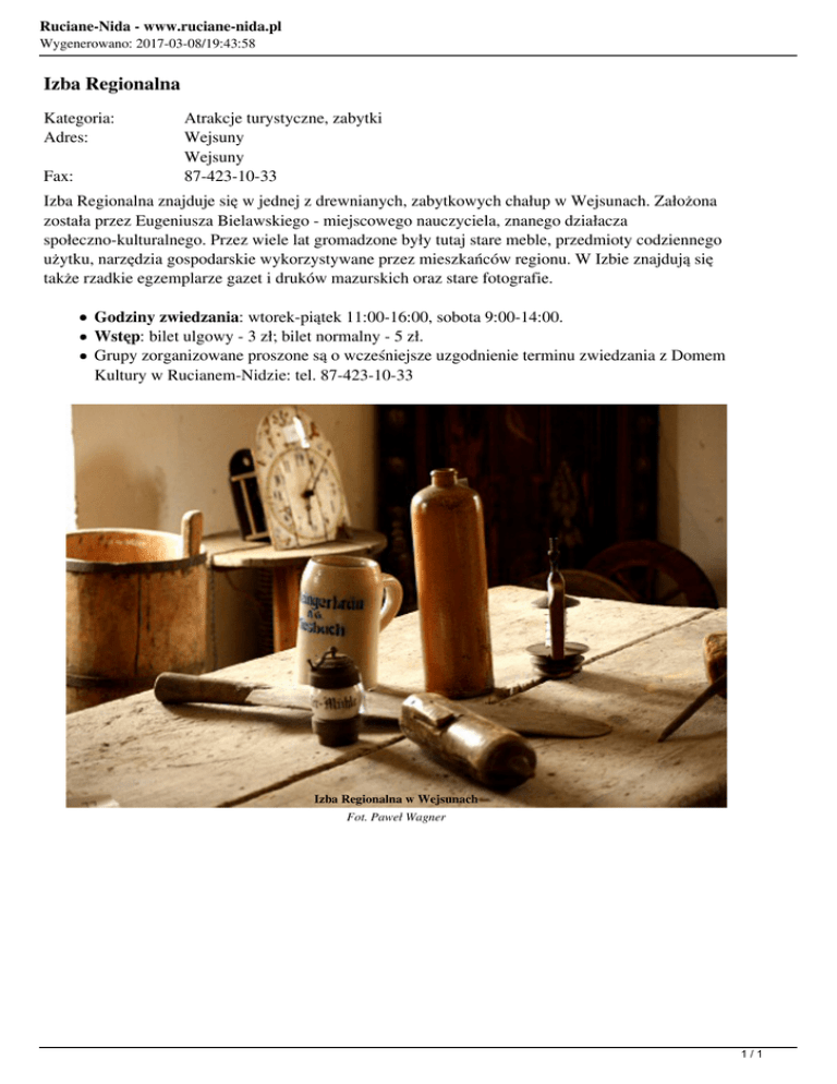 Izba Regionalna - Ruciane-Nida