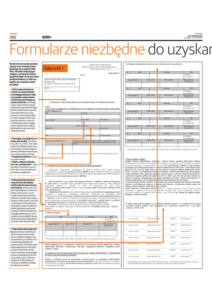 Artykuł "Formularze niezbędne do uzyskania 500 Plus"