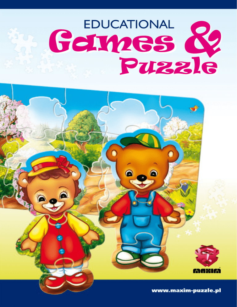 EDUCATIONAL Games & Puzzle www.maxim-puzzle.pl about us Maxim designs and manufactures a wide range of high quality educational games and puzzles for children. We are based in Wroclaw, Poland, and are a well established brand in Europe. We are hoping to build a foothold in the UK with our range of 3D puzzle play sets, puzzle games, puzzle cards and classic puzzles. Our games and puzzles are designed to be engaging to play and assist with the learning and development of youngsters through improving dexterity, hand-eye co-ordination and building their understanding of the world. Our philosophy is very much to create products which are fun, most of all, but which, through play, encourage children to add to their knowledge of shape, colour, test their memories, improve their fine motor skills and, ultimately, fire their imaginations. Our products combine eye-catching designs, full colour printing on thick, durable card, which is extremely tactile and easy to handle. We only ever use the finest quality materials from reputable suppliers and strive to source from the most ethical, safe and ecologically sound sources available. 1-2 number of players liczba graczy We have an extensive catalogue ranging from 3, 4 and 5 piece puzzles up to 150, 260, 600 and 1000 piece jigsaws for the more advanced players. We also have a wide variety of puzzle games and giant floor puzzles. Please do not hesitate to get in touch with us if you would like to receive a copy of our product list or to enquire about pricing, shipment or any other matter. 3+ age group grupa wiekowa Thanks for your interest in Maxim, Anna Terlecka-Zastawniak Founder and CEO MAXIM · UK Edinburgh Krystian Malowanski phone: +44 (0)7737 429 881 [email protected] www.maxim-puzzle.eu 30 number of pieces ilość elementów 46x17x4 cm box size wymiary pudełka 9x13 cm size once complete wymiary planszy Firma MAXIM – producent puzzli i gier edukacyjnych dla dzieci działa na rynku od 1986 r. Wyroby ze znakiem firmowym MAXIM to gwarancja jakości i nowoczesnej technologii. Indywidualne rozwiązania jakościowe i opracowane technologie umożliwiają nam konkurowanie w czołówce polskich producentów puzzli, a zdobyte wieloletnie doświadczenie jak i dbałość o zastosowanie najlepszych materiałów oraz surowe kryteria procesu produkcyjnego przekładają się na uzyskanie produktów najwyższej jakości. Puzzle Wyjątkowa grafika to owoc idącego z duchem czasu studia graficznego i wysoko wykwalifikowanych profesjonalistów. Zarówno różnorodna ilość elementów, kolorystyka, czy odpowiednie motywy pozwalają wybrać właściwy produkt z naszej oferty. Szeroki wachlarz możliwości doboru odpowiedniego produktu dla edukacji dziecka, uwzględnia jego wiek, płeć jak i upodobania, a wesoła tematyka obrazków jest w stanie połączyć dobrą zabawę z pierwszą nauką postrzegania kolorów i kształtów. Zachęcamy do zapoznania się z ofertą naszych produktów i mamy nadzieję, że sprostamy państwa oczekiwaniom. Dziękujemy za zainteresowanie naszą ofertą Anna Terlecka-Zastawniak Właściciel x10 ~9x13 cm number of puzzles/boards liczba plansz MAXIM · Poland 53-650 Wroclaw · ul. Czarnieckiego 11/11 tel./fax +48 71 790 54 51 · tel. +48 71 373 47 75 [email protected] www.maxim-puzzle.pl educational 3+ GAMES Complete these puzzles by matching the pictures, the colours, the shapes or the numbers. The pieces slot together to form the digits 0 to 9. Designed to improve a child's manual dexterity and number awareness as well as testing numeracy and basic mathematical concepts. years / lat / Jahre Numbers Ilustrowana postaciami zwierzątek gra edukacyjna do nauki liczenia dla najmłodszych. Duże, kolorowe puzzle tworzą kształty cyferek od 0 do 9, na których zobrazowane są proste działania matematyczne z zakresu dodawania i odejmowania. Gra pomaga dziecku zrozumieć czym są liczby, ćwiczy koncentrację, zdolności manualne i rozwija spostrzegawczość. i can count! Cyfraki Zifferspiele 1:1 No G30.02.01 Numbers Cyfraki · Zifferspiele x10 1-2 3+ 30 46x17x4 cm ~9x13 cm educational 3+ GAMES years / lat / Jahre BABY It is a bright, colourful and fun giant floor puzzle stretching to a full 1,2m once complete. Encourages children to build their memory and skills of association as well as their knowledge of shape and colour. Loko Wprowadzenie w tajniki matematyki dla najmłodszych. Ogromne, kolorowe, pięknie ilustrowane puzzle do ułożenia pociągu z cyferkami o długości 1,2 m. Gra pomaga w obrazowym zrozumieniu pojęcia liczby. Rozwija podstawowe umiejętności matematyczne: liczenia w zakresie od 1 do 5 i przyporządkowania odpowiednich liczb zbiorom elementów. 1:1 No G18.01.01 BabyLOKO 1,2 m x6 1-2 3+ 18 46x17x4 cm 22x16 cm educational 3+ GAMES years / lat / Jahre Whose vehicle is this? Czyj to pojazd? Wem gehört das Fahrzeug zu? Match the driver to the vehicle in this engaging puzzle card game. Both educational and fun. Promotes manual dexterity and increases understanding of the world. Gra edukacyjna, podczas której dziecko uczy się rozpoznawać i łączyć postacie charakterystycznych zawodów z ich pojazdami, których używają w swojej pracy. Rozwija pamięć, koncentracje i zdolności manualne. No G32.03.02 Whose vehicle is this? · Czyj to pojazd? Wem gehört das Fahrzeug zu? x16 2-4 3+ 32 20x17x8 cm 11x16 cm You need to buy some new outfits for your friends and you must match the correct clothing to the activity. Are they having fun in the snow, at the beach, at a party or in the countryside? The winner is the player who is first to get the correct items in their trolley. Dzieci losują obrazki przedstawiające postacie w różnych sytuacjach, a potem kolejno odkrywają żetony. Jeżeli ubranko na żetonie pasuje do sytuacji przedstawionej na obrazku, gracz wkłada żeton do koszyka. Jeżeli nie, odkłada go na stół. Wygrywa ten, kto pierwszy zapełni swój koszyk. No G40.04.01 What to wear? · W co się ubrać? Was sol