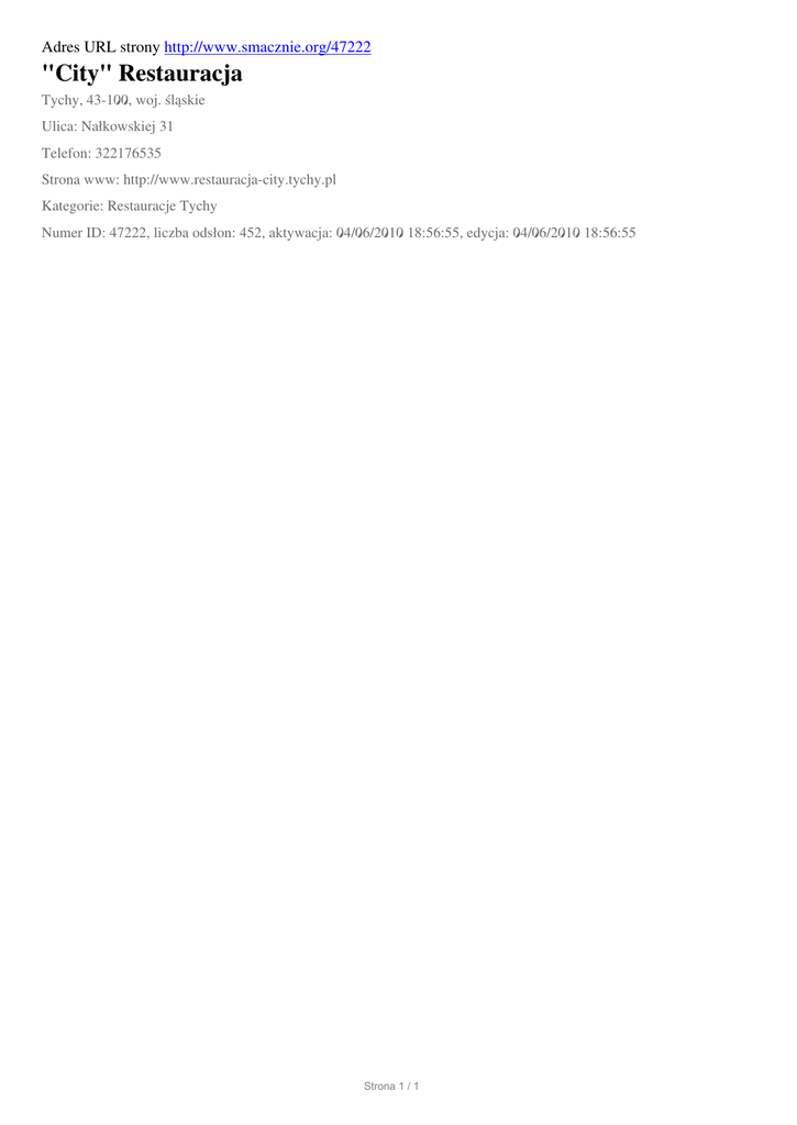 "City" Restauracja, Tychy, Nalkowskiej 31