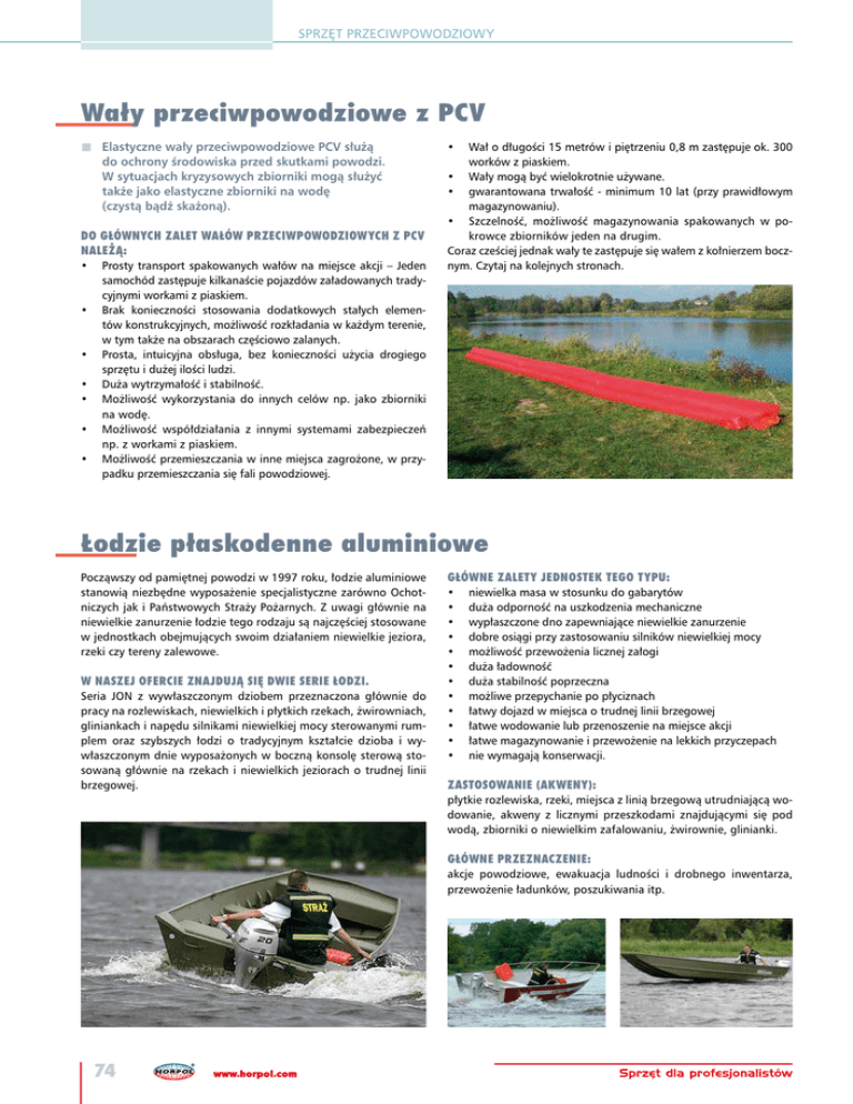 Wały przeciwpowodziowe z PCV Łodzie płaskodenne aluminiowe