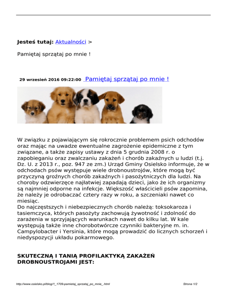29 wrzesień 2016 09:22:00 Pamiętaj sprzątaj po mnie !