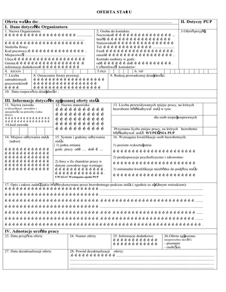 OFERTA STAŻU Oferta ważna do:......................................................