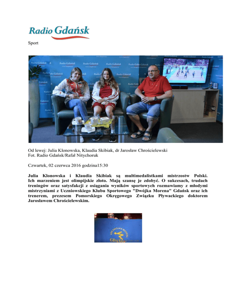 Sport Od lewej: Julia Klonowska, Klaudia Skibiak, dr Jarosław Chrościelewski Fot. Radio Gdańsk/Rafał Nitychoruk Czwartek, 02 czerwca 2016 godzina15:30 Julia Klonowska i Klaudia Skibiak są multimedalistkami mistrzostw Polski. Ich marzeniem jest olimpijskie złoto. Mają szansę je zdobyć. O sukcesach, trudach treningów oraz satysfakcji z osiągania wyników sportowych rozmawiamy z młodymi mistrzyniami z Uczniowskiego Klubu Sportowego "Dwójka Morena" Gdańsk oraz ich trenerem, prezesem Pomorskiego Okręgowego Związku Pływackiego doktorem Jarosławem Chrościelewskim. Trenerze, może pan przypomnieć największe sukcesy dziewcząt? Jarosław Chrościelewski: Julia Klonowska to multimedalistka mistrzostw Polski, wielokrotna złota medalistka na 100 i 200 metrów stylem dowolnym, finalistka Igrzysk Europejskich 2015 w Baku. Klaudia Skibiak pierwszy raz startowała w tym roku na mistrzostwach polski juniorów. Zdobyła trzy medale: złoto, srebro i brąz. Jaki start najbardziej utkwił wam w pamięci? Z czego jesteście dumne? Julia Klonowska: Najbardziej jestem dumna ze startu w igrzyskach europejskich i z tego, że udało mi się w tym roku dostać na mistrzostwa Europy. Największych emocji dostarczył mi start w ostatnich letnich mistrzostwach polski. Płynęłam stylem dowolnym na dystansie 100 metrów. Miałam bardzo słabą formę. Byłam strasznie zestresowana. Nie popłynęłam życiówki, a jednak udało mi się zwyciężyć, zdobyłam złoty medal. Klaudia Skibiak: Ja jestem najbardziej zaskoczona startem na mistrzostwach Polski. Tym, że zdobyłam aż trzy medale. Co trzeba zrobić, by dziecko przeistoczyło się w sportowca? J.C.: Przede wszystkim należy stworzyć system szkolenia. Nasza szkoła umożliwia szkolenie dzieci już od pierwszej klasy szkoły podstawowej. Bardzo ważni są też trenerzy nadzorujący rozwój zawodników na każdym z etapów procesu treningowego, którzy prowadzą dzieci w planie wieloletnim. Nie chodzi o to, żeby wynik pojawił się tu i teraz, ale o ukształtowanie ludzi, którzy będą odnosili sukcesy w juniorach i seniorach. Ważne są także nabory, współpraca ze szkółkami pływania. To ma wpływ na wyłapywanie talentów. Pojawiają się też przypadki dzieci takich jak Julia, która trafiła do nas w trzeciej klasie. Podstawą jest jednak dobry system stworzony przez szkołę. Jak wygląda codzienne życie mistrzyń? J.K.: Wstaję o 5.30, jadę na trening, który zaczyna się o 7 i trwa dwie godziny. Potem idę do szkoły. O 14.30 mam drugi trening. Wracam do domu ok. 17.30, 18. Zjadam obiad i zabieram się za odrabianie lekcji. Potem kładę się spać. To tyle. Wasza szkoła, Zespół Kształcenia Podstawowego i Gimnazjalnego nr 21 z klasami sportowymi w Gdańsku, ułatwia godzenie nauki ze sportem? K.S.: Tak, i to bardzo. J.C.: W naszej szkole treningi są wkomponowane w plan lekcji. Pływacy, którzy wyjeżdżają na zgrupowania kadry, mają możliwość uczestniczenia w zajęciach indywidualnych oraz konsultacjach z nauczycielami. Julki, przykładowo, w zeszłym roku prawie dwa miesiące nie było w szkole. Miała indywidualny plan nauczania opracowany przez wszystkich nauczycieli, żeby mogła z dobrymi ocenami ukończyć rok szkolny. Nie mamy w Trójmieście basenu 50-metrowego. Czy to nie odbiera nam możliwości przygotowywania się do zawodów najwyższej rangi, które są rozgrywane właśnie na tego typu obiektach? Taki basen jest wam potrzebny? J.K.: Moim zdaniem jest bardzo potrzebny. Kończę gimnazjum i niestety nie mogę zostać w mieście, nie mogę zostać w domu. Wyjeżdżam najprawdopodobniej do Warszawy, ponieważ tam będę miała warunki do pływania. Moje miasto nie zapewni mi takich warunków. Bez basenu 50-metrowego nie można już pływać w tym wieku. K.S.: Tak, jest bardzo potrzebny, jeśli chcemy posuwać się na przód i osiągać wyniki. Wszystkie ważne zawody rozgrywają się właśnie na tego typu basenach. Od kilkunastu lat nie mamy żadnego zawodnika z Pomorza, który zakwalifikował się do igrzysk olimpijskich. Kiedyś Pomorze dobrze stało w pływaniu. Medale zdobywali: Mariusz Siembida, Marcin Maliński, Igor Łuczak, Alicja Pęczak. Czy pana młode podopieczne będą tworzyły historię? J.C.: Mam nadzieję, że tak. Celem życia każdego, kto zajmuje się uprawianiem sportu, jest pojechanie na igrzyska olimpijskie. Na mistrzostwach Polski zawodniczka z AZS Gdańsk, Diana Sokołowska, wywalczyła już praktycznie nominacje na igrzyska, gdzie wystartuje w sztafecie 4 razy 200 metrów stylem dowolnym. Także mam nadzieję, że dziewczyny też w przyszłości się zakwalifikują. A co było przyczyną tego, że tak długo nikt się nie kwalifikował? To złożony problem, na który wpływ miało wiele czynników. Jednym z nich jest z pewnością zniknięcie z mapy Polski klubu Flota Gdynia, kolejnym brak 50-metrowej pływalni dla studentów przy Akademii Wychowania Fizycznego w Gdańsku. To ostatnie sprawia, że zawodnicy nie przychodzą do nas, tylko idą do ośrodków, które dysponują takimi obiektami. Wasze marzenia? J.K.: Na pewno start w igrzyskach olimpijskich i, nie ukrywam, zdobycie medalu. Obojętnie jakiego. K.S.: Podium mistrzostw olimpijskich. J.C.: To, że mamy system szkolenia pozwalający na spełnienie takich marzeń jest zasługą miasta Gdańska oraz pracy wspaniałej kadry trenerskiej, którą posiadamy. To ta praca u podstaw sprawia, że w gimnazjum, gdzie rozpoczyna się system szkolenia sportowego dzieci i młodzieży, mamy wspaniałe osiągnięcia. O tym, że posiadamy bardzo dobrą kadrę świadczy także to, że rokrocznie dzieci w wieku od 10 do 13 lat zajmują miejsce w pierwszej 10 w zestawieniach ogólnopolskich. Nasza szkoła wygrywa także Ligę Pływacką Województwa Pomorskiego i to zarówno w młodzikach, jak i w juniorach młodszych. Oprócz obecnych tutaj dziewcząt, mamy jeszcze naszą wychowankę Julię Baryłę, także wielokrotną medalistkę i mis