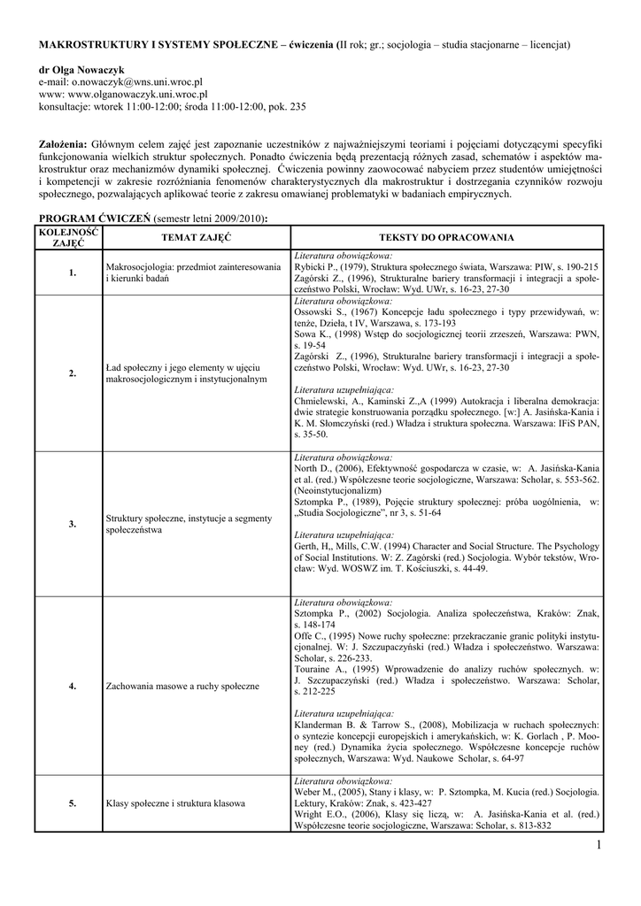 syllabus do ćwiczeń - MAKROSTRUKTURY
