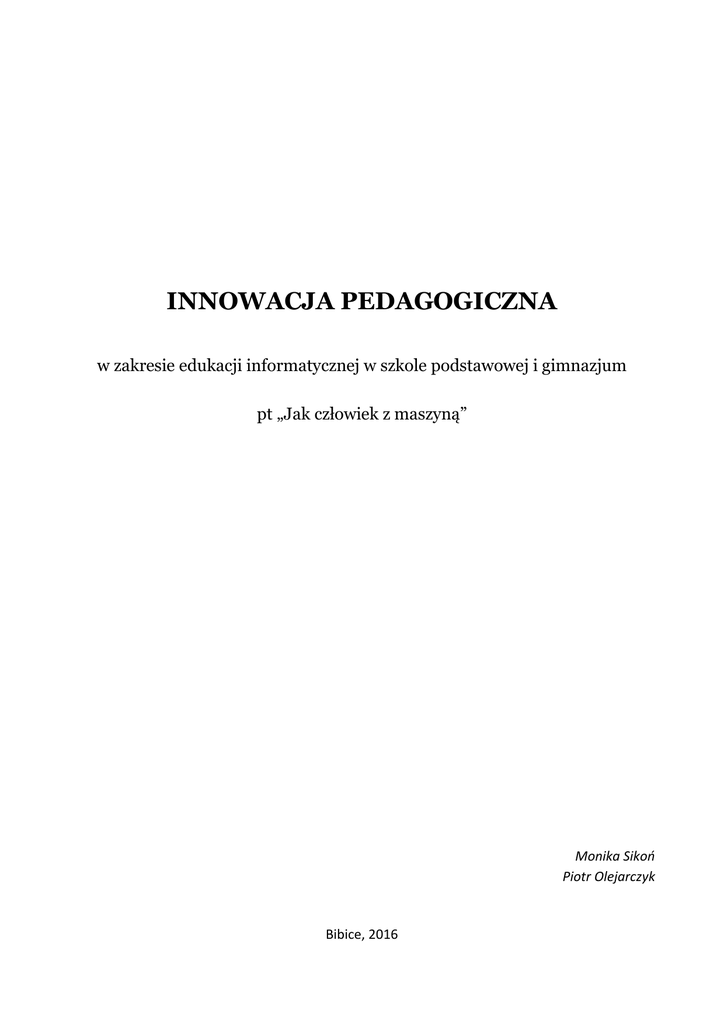 Innowacja pedagogiczna „Jak człowiek z maszyną”