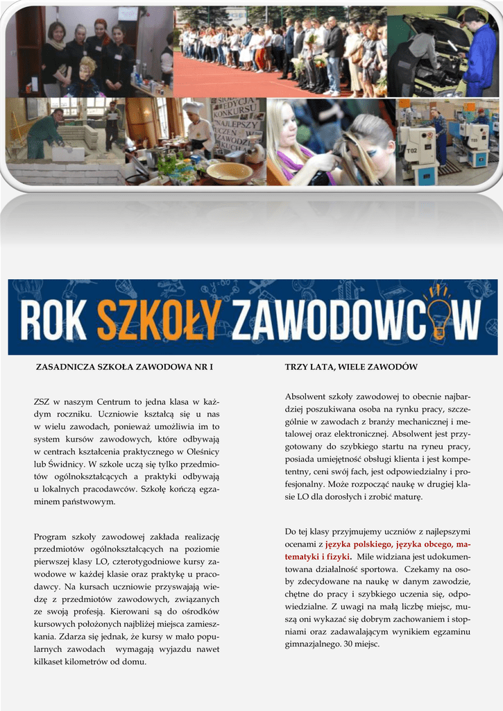 ZASADNICZA SZKOŁA ZAWODOWA NR I ZSZ w naszym Centrum